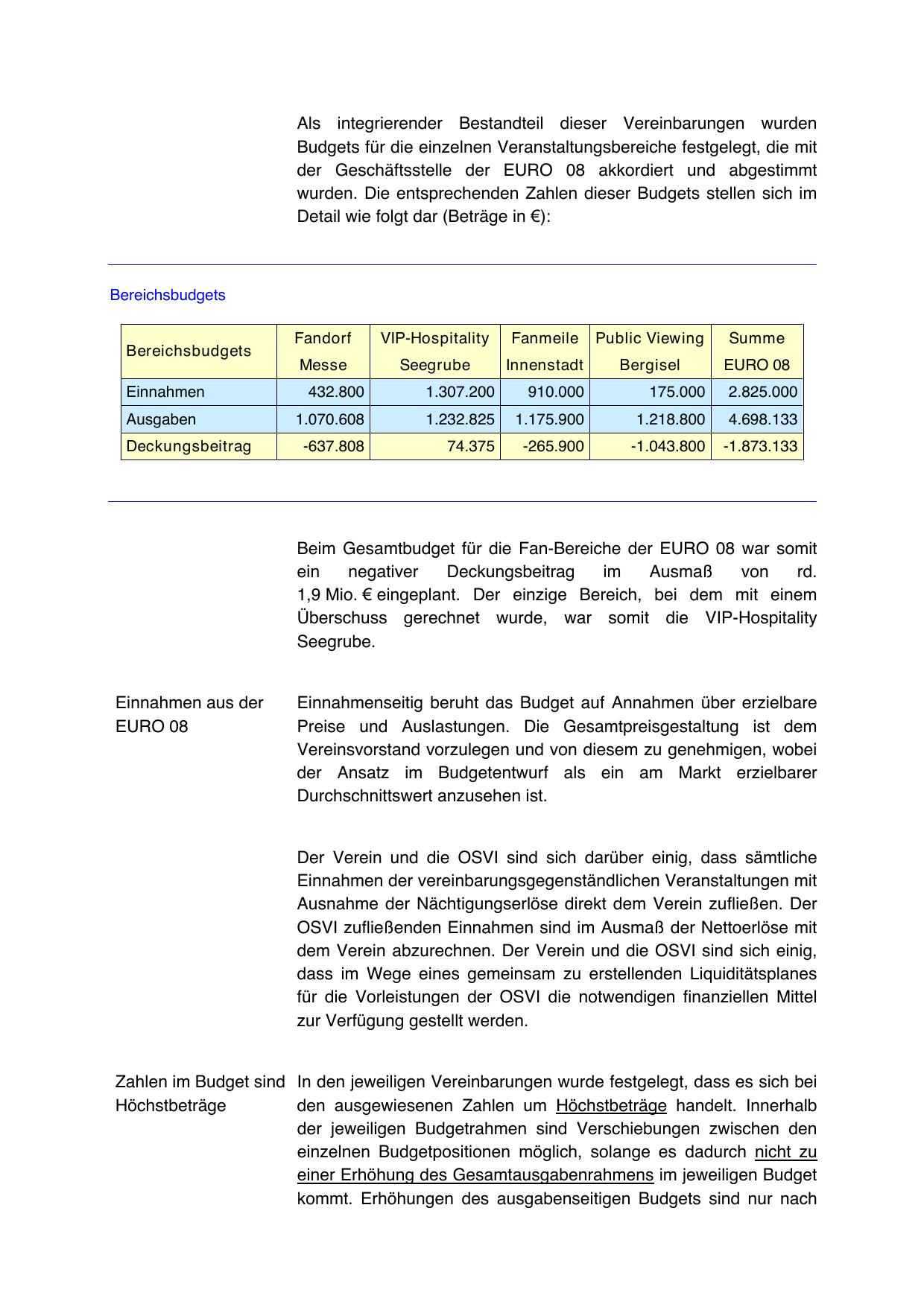 Beim Gesamtbudget für die Fan-Bereiche der EURO 08 war somit