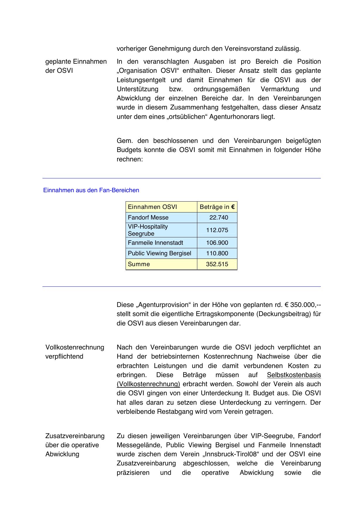 wurde zischen dem Verein „Innsbruck-Tirol08“ und der OSVI eine
