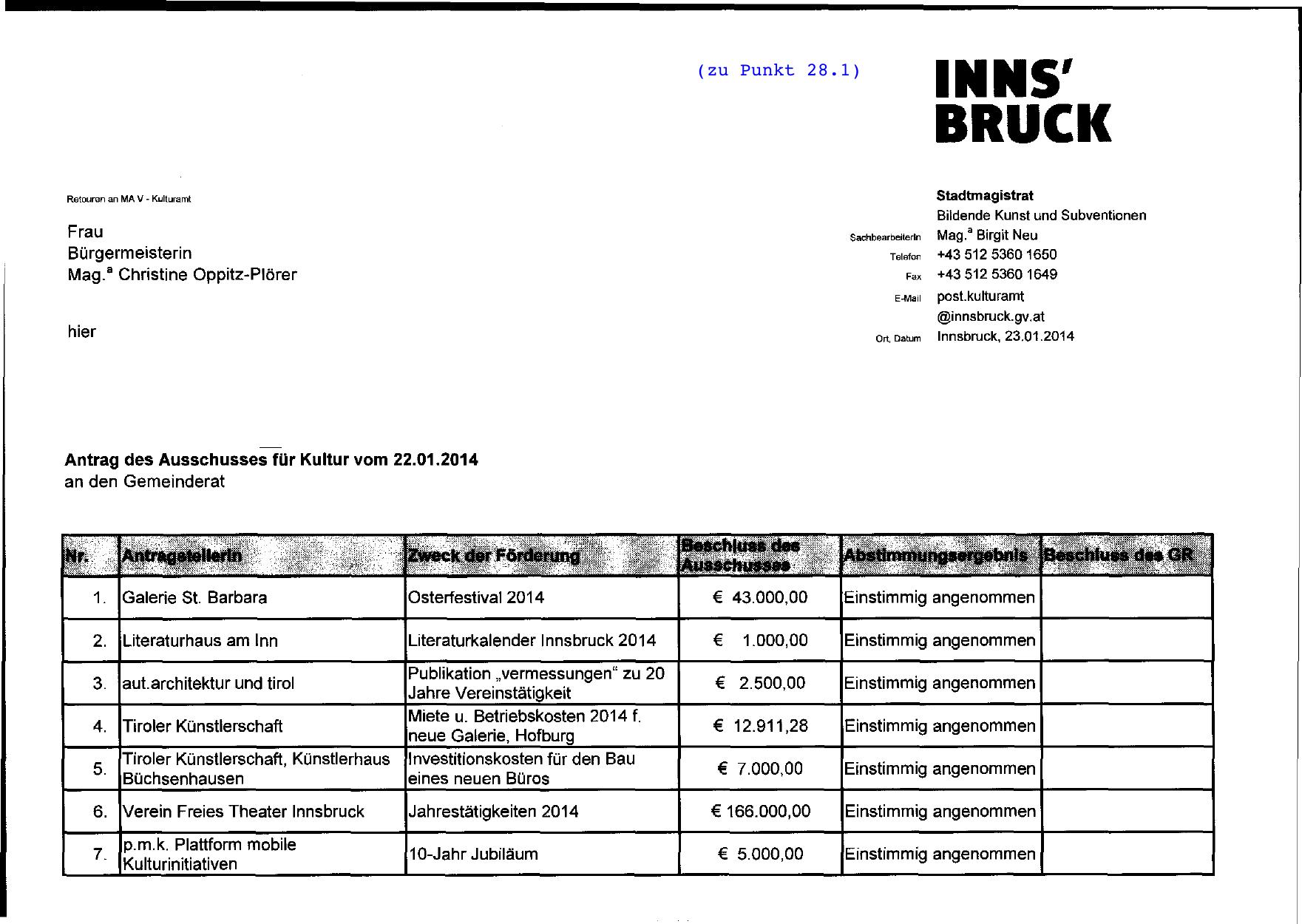 Antrag des Ausschusses für Kultur vom 22.01.2014