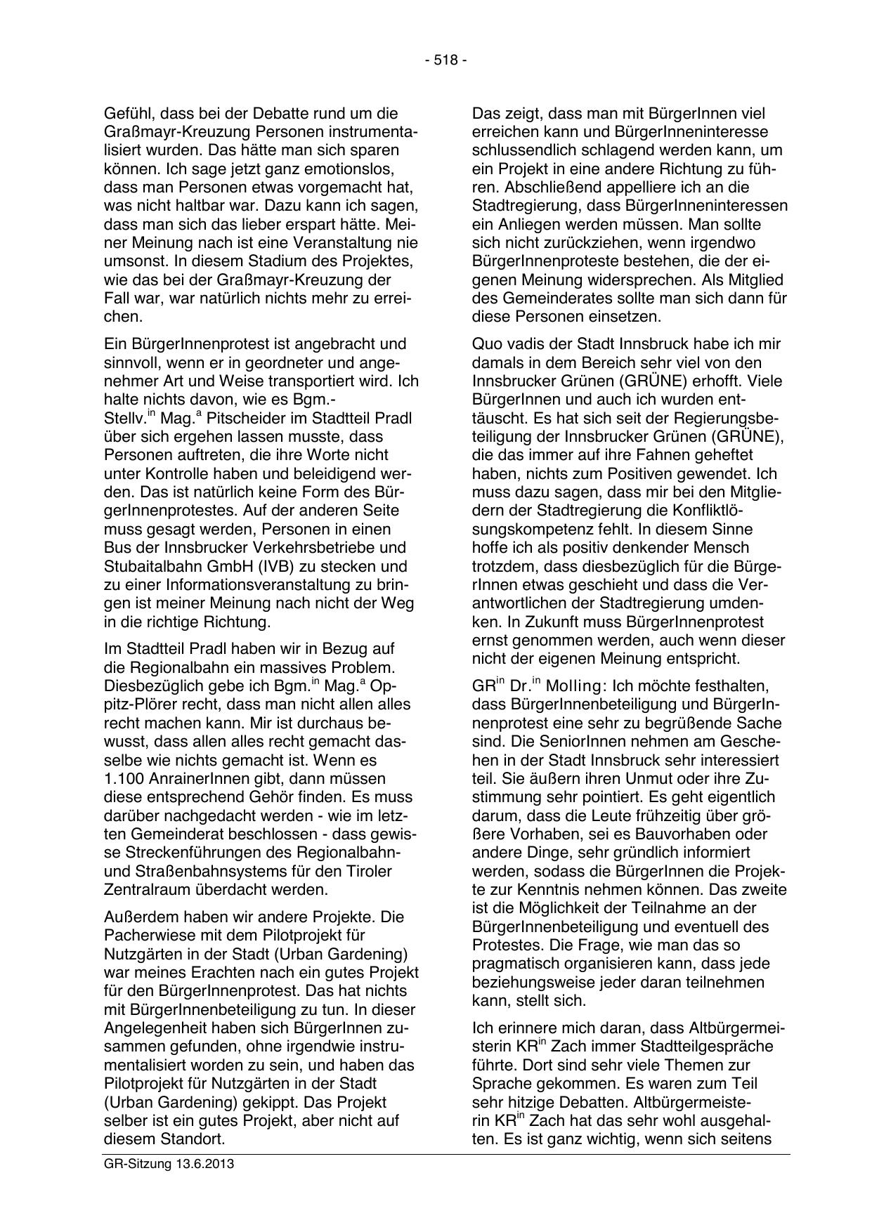 Innsbrucker Grünen (GRÜNE) erhofft. Viele