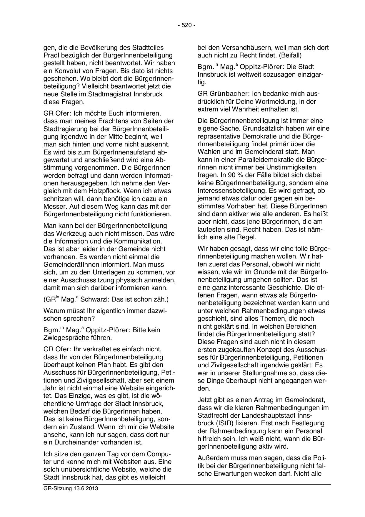 GR Grünbacher: Ich bedanke mich ausdrücklich für Deine Wortmeldung, in der