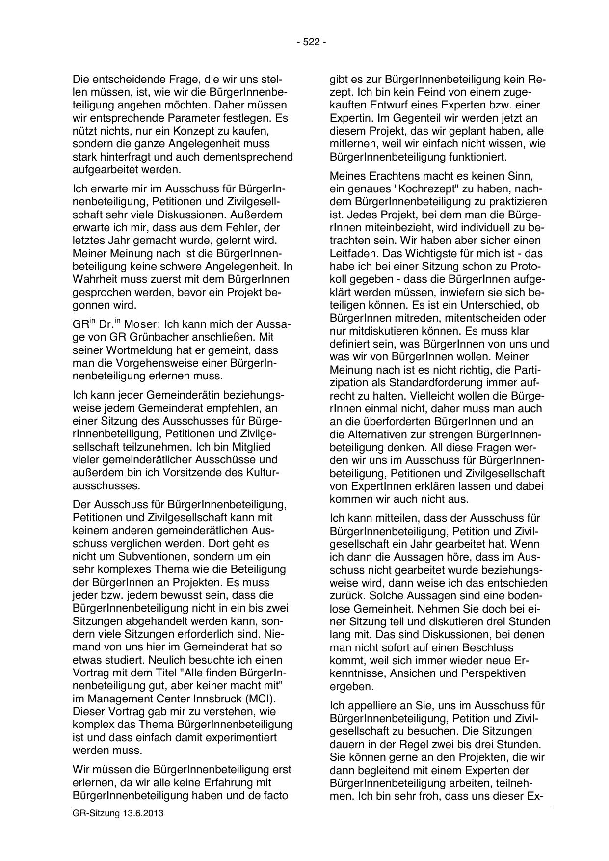 BürgerInnenbeteiligung arbeiten, teilnehmen. Ich bin sehr froh, dass uns dieser Ex-