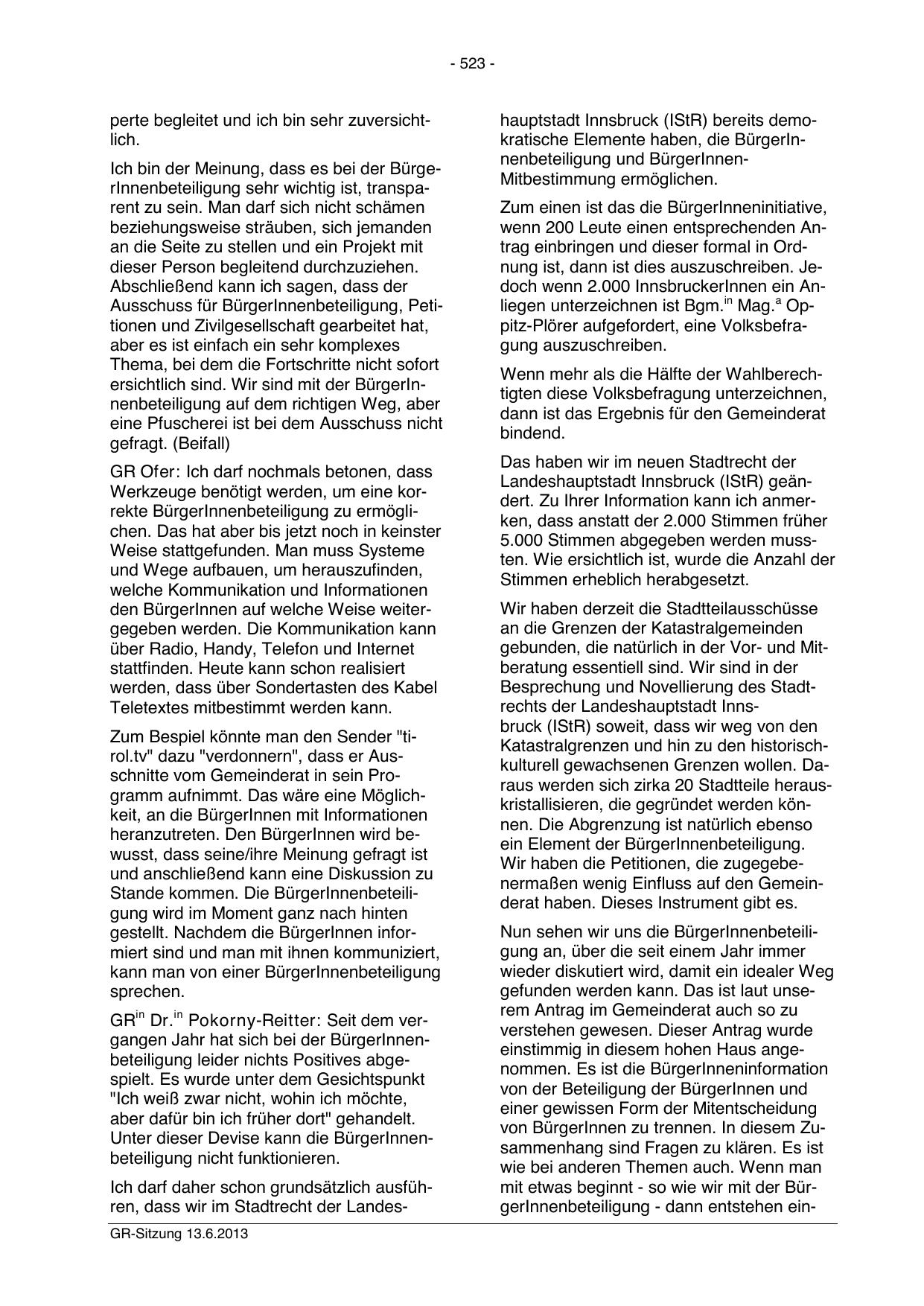Ich darf daher schon grundsätzlich ausführen, dass wir im Stadtrecht der LandesGR-Sitzung 13.6.2013