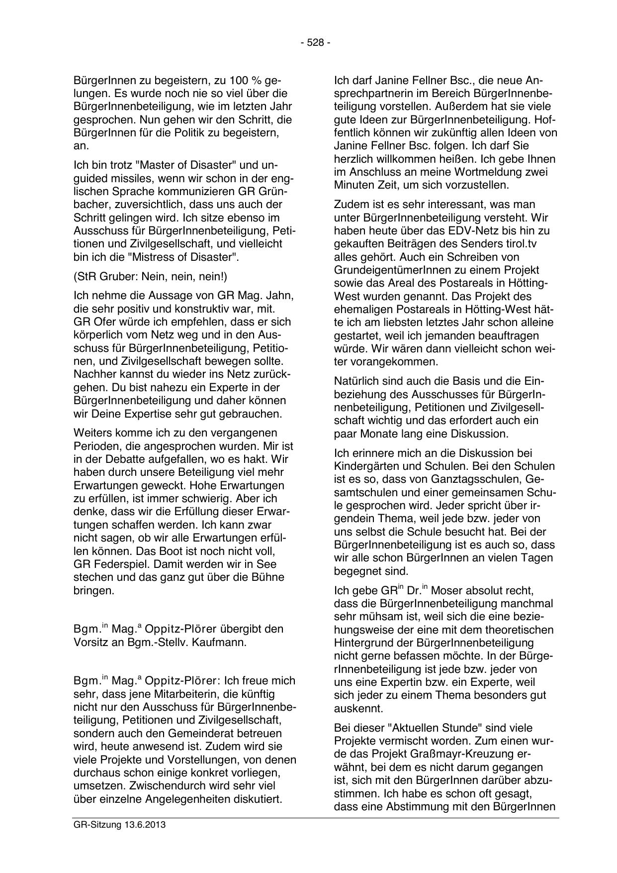 Projekte vermischt worden. Zum einen wurde das Projekt Graßmayr-Kreuzung erwähnt, bei dem es nicht darum gegangen