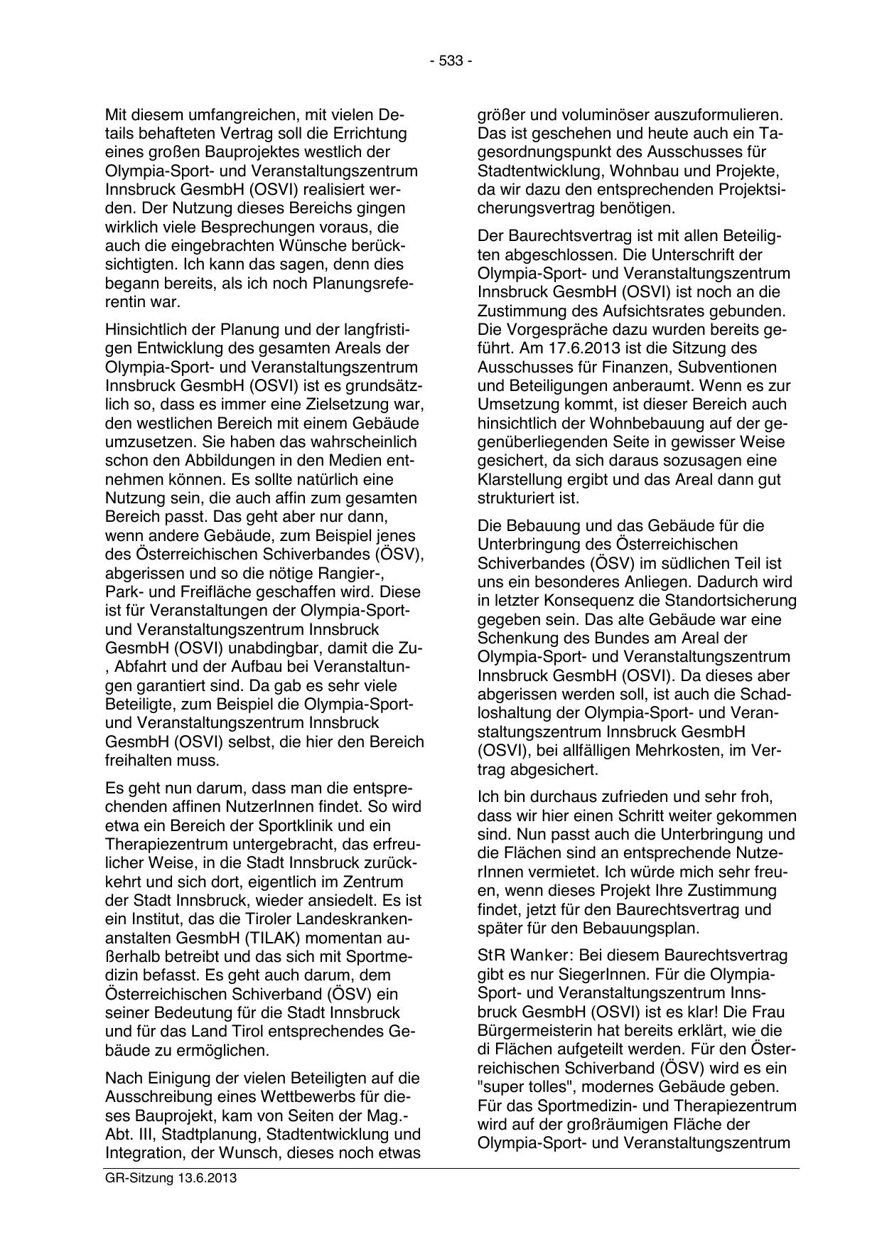 Innsbruck GesmbH (OSVI) realisiert werden. Der Nutzung dieses Bereichs gingen