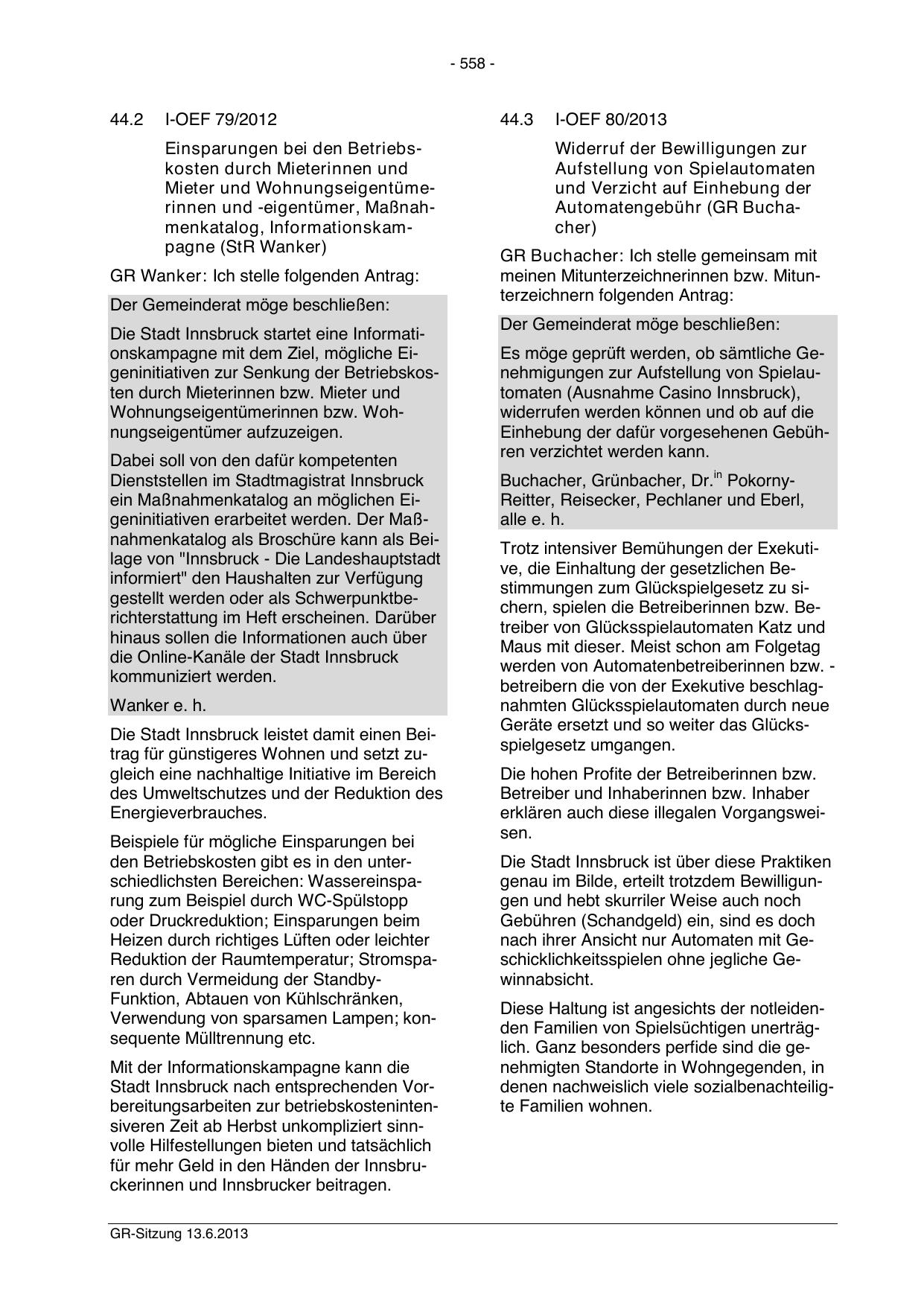 Es möge geprüft werden, ob sämtliche Genehmigungen zur Aufstellung von Spielautomaten (Ausnahme Casino Innsbruck),