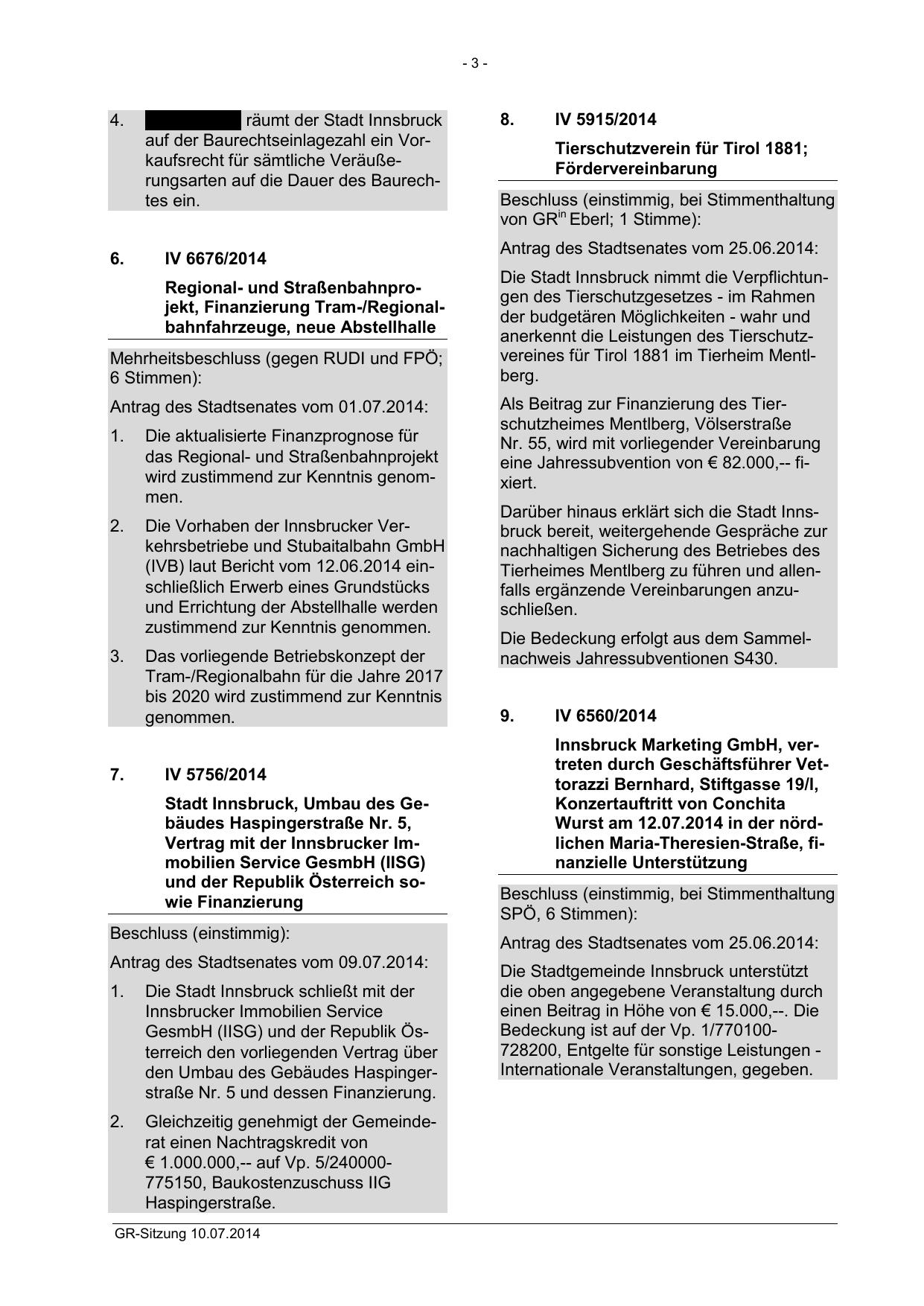 Mehrheitsbeschluss (gegen RUDI und FPÖ;