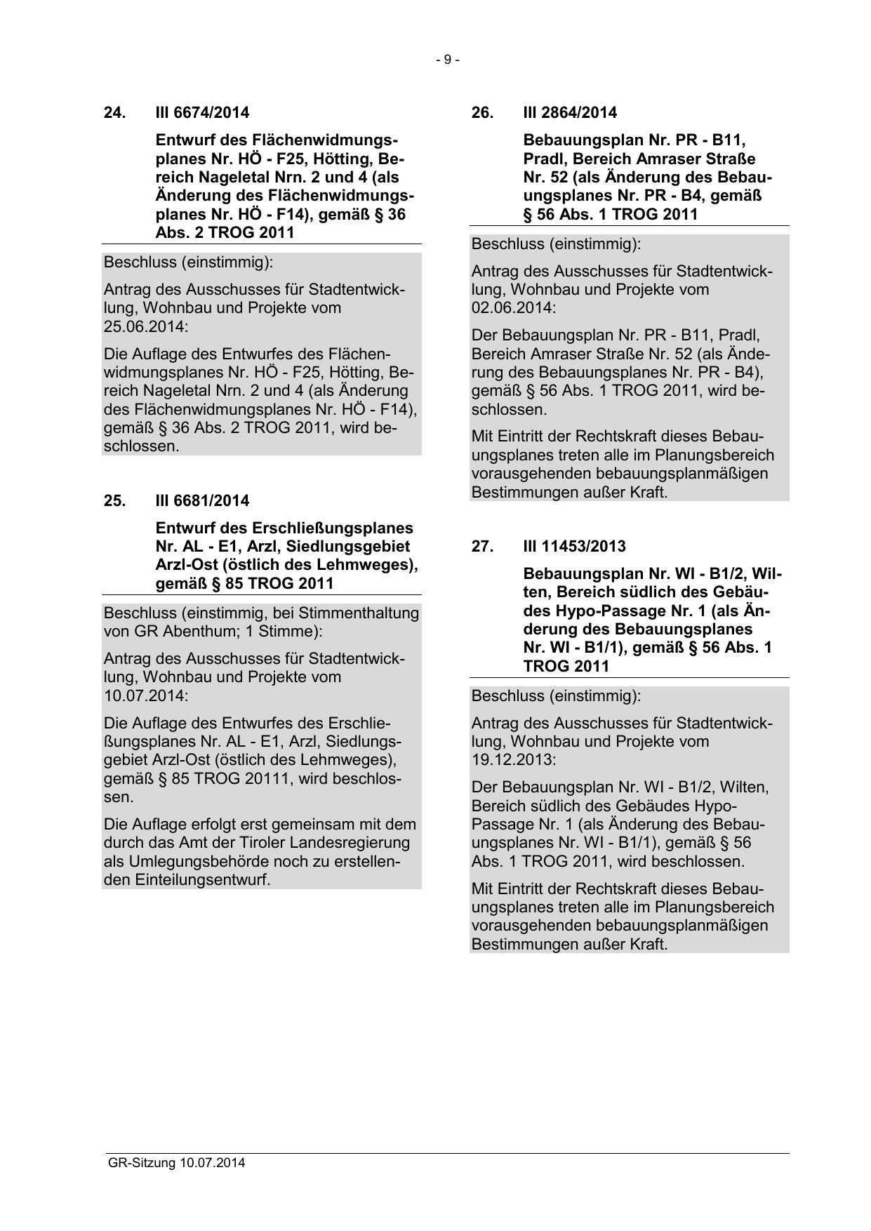 gemäß § 36 Abs. 2 TROG 2011, wird beschlossen.
