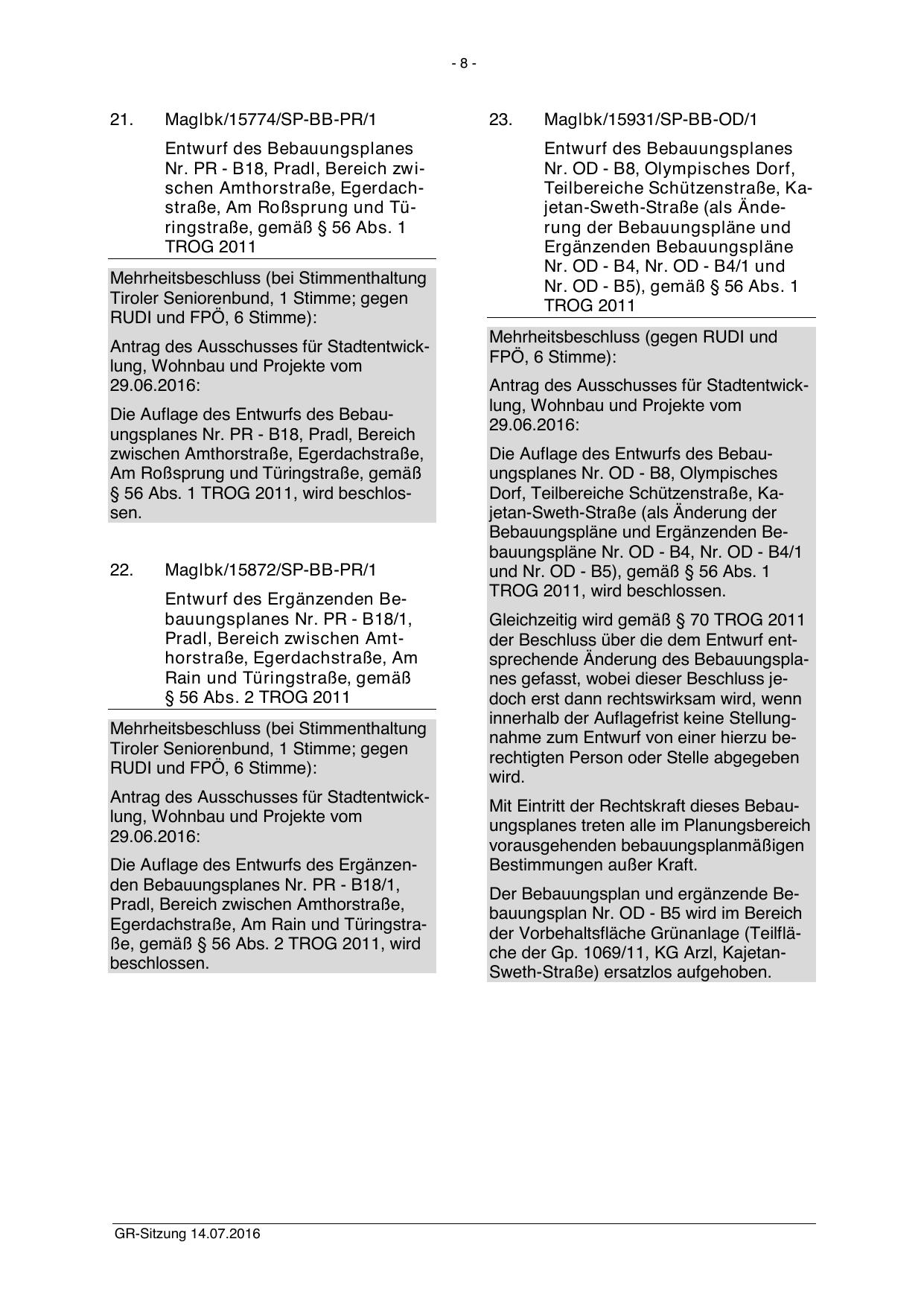 § 56 Abs. 1 TROG 2011, wird beschlossen.