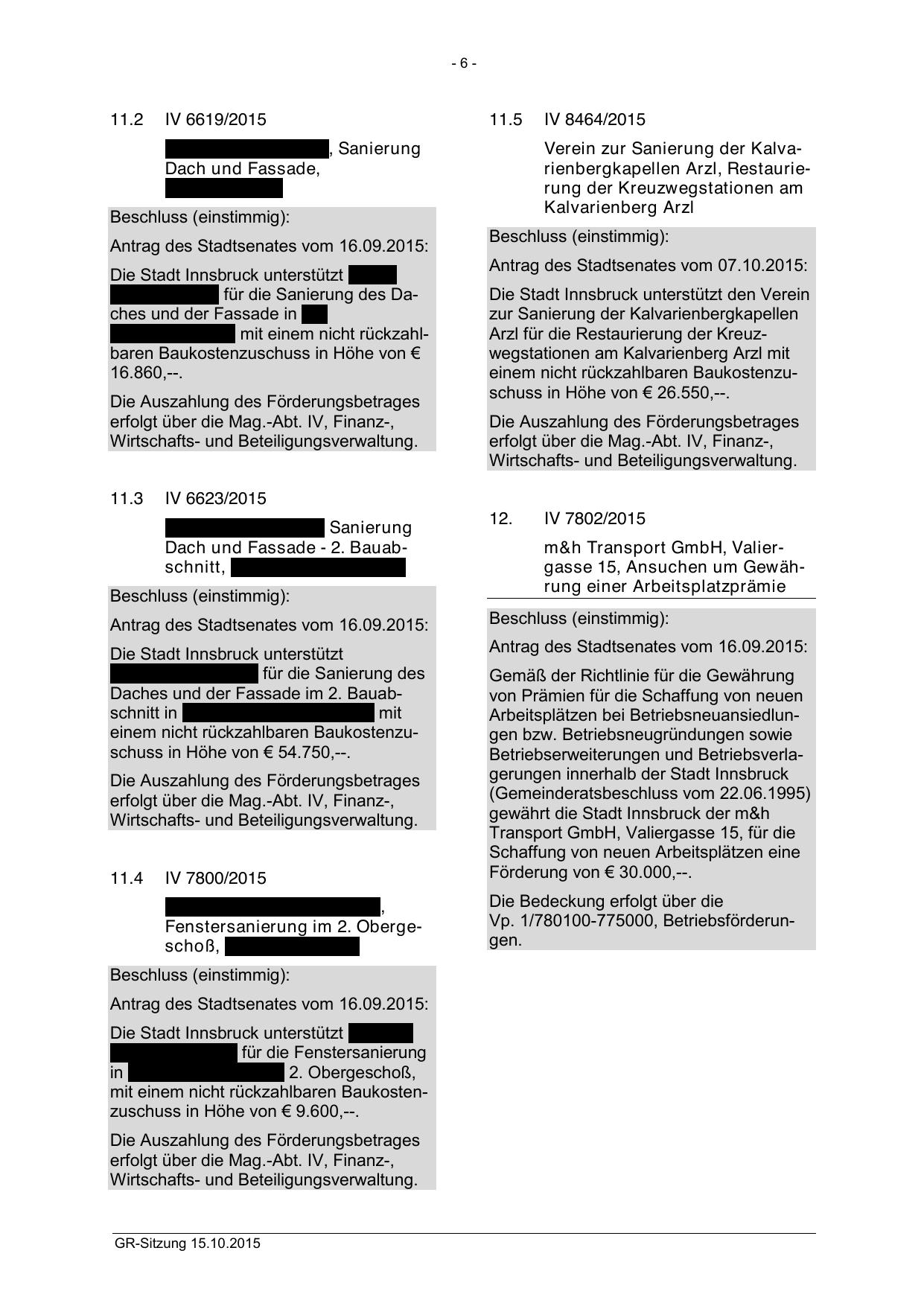 Betriebserweiterungen und Betriebsverlagerungen innerhalb der Stadt Innsbruck