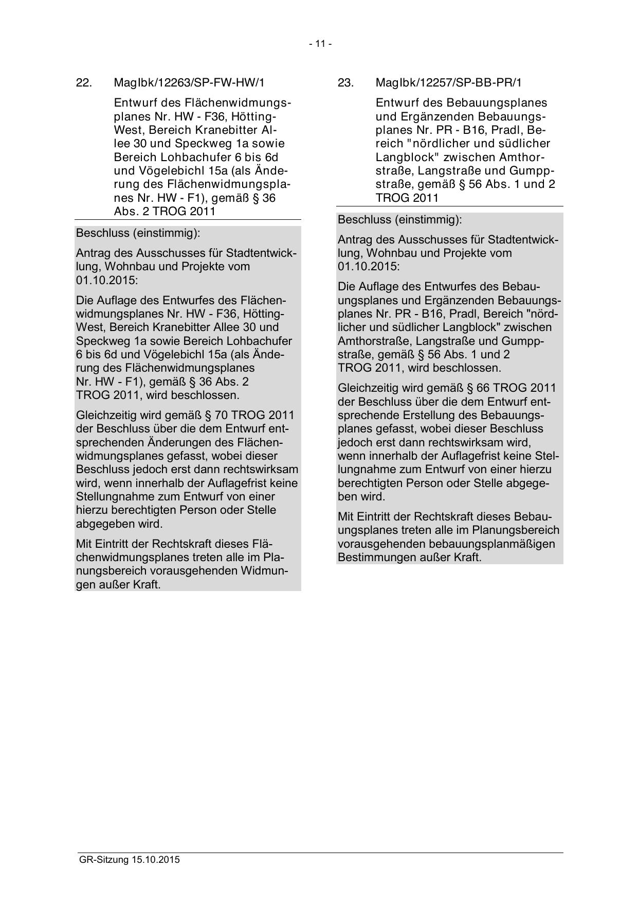 Gleichzeitig wird gemäß § 66 TROG 2011