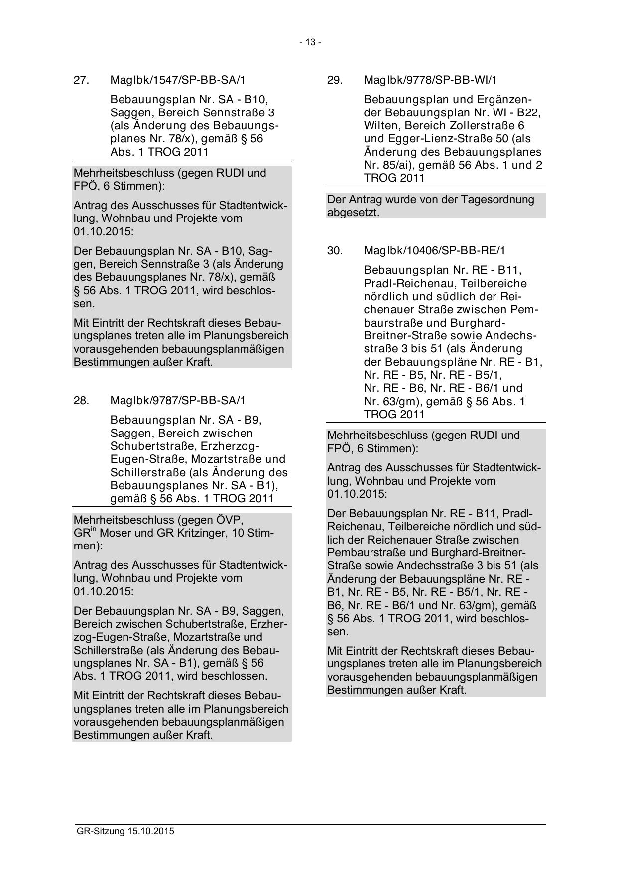 § 56 Abs. 1 TROG 2011, wird beschlossen.