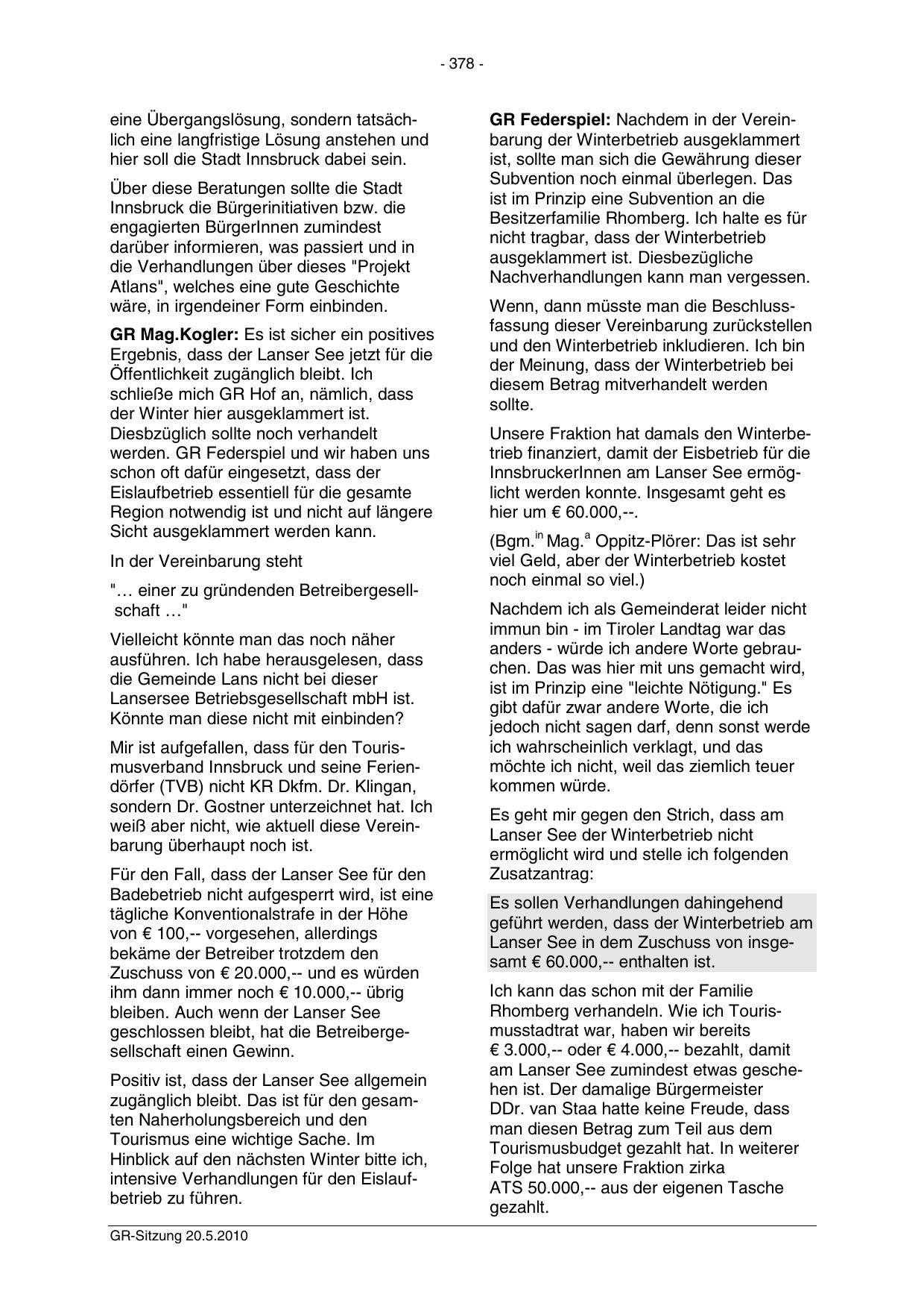 InnsbruckerInnen am Lanser See ermöglicht werden konnte. Insgesamt geht es