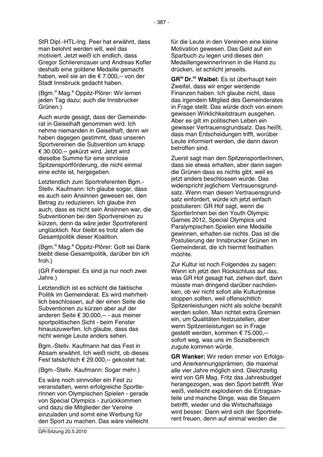 Letztendlich zum Sportreferenten Bgm.Stellv. Kaufmann: Ich glaube sogar, dass