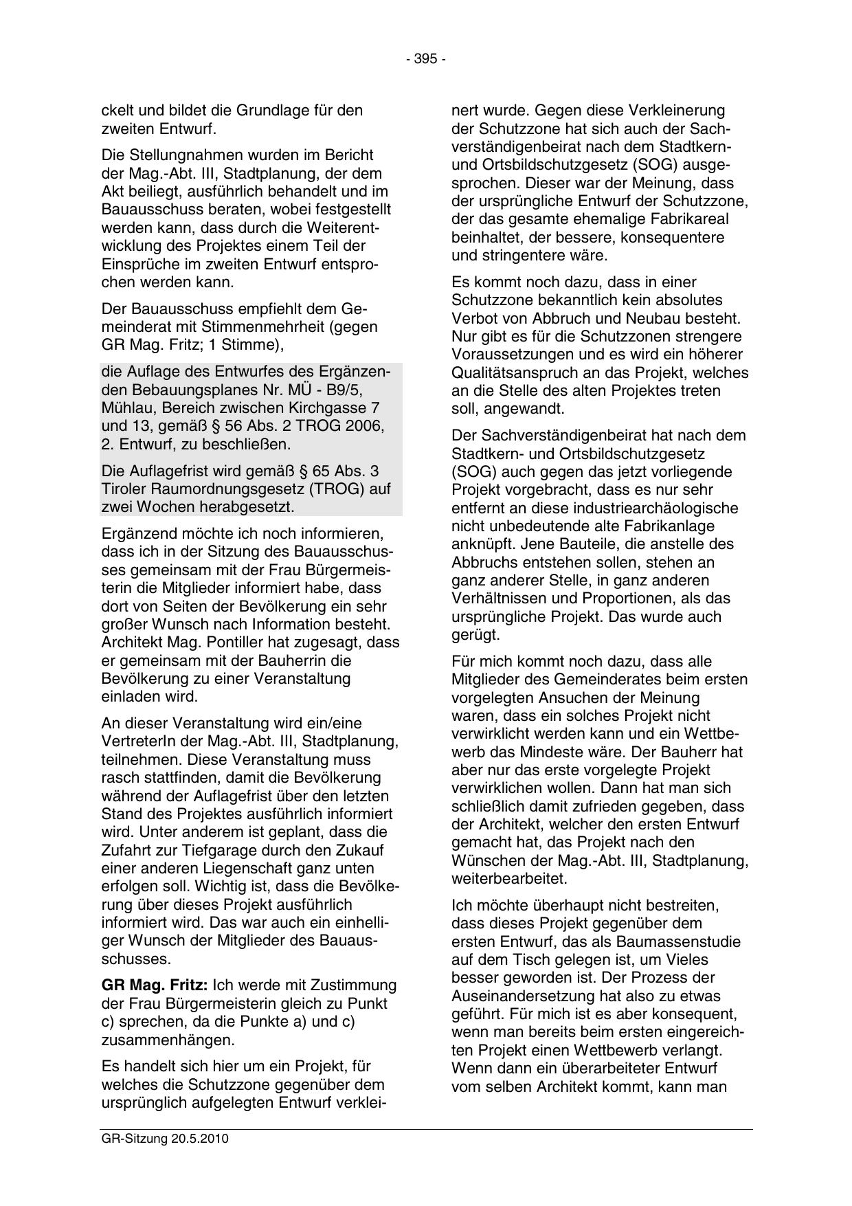 ursprünglich aufgelegten Entwurf verkleiGR-Sitzung 20.5.2010