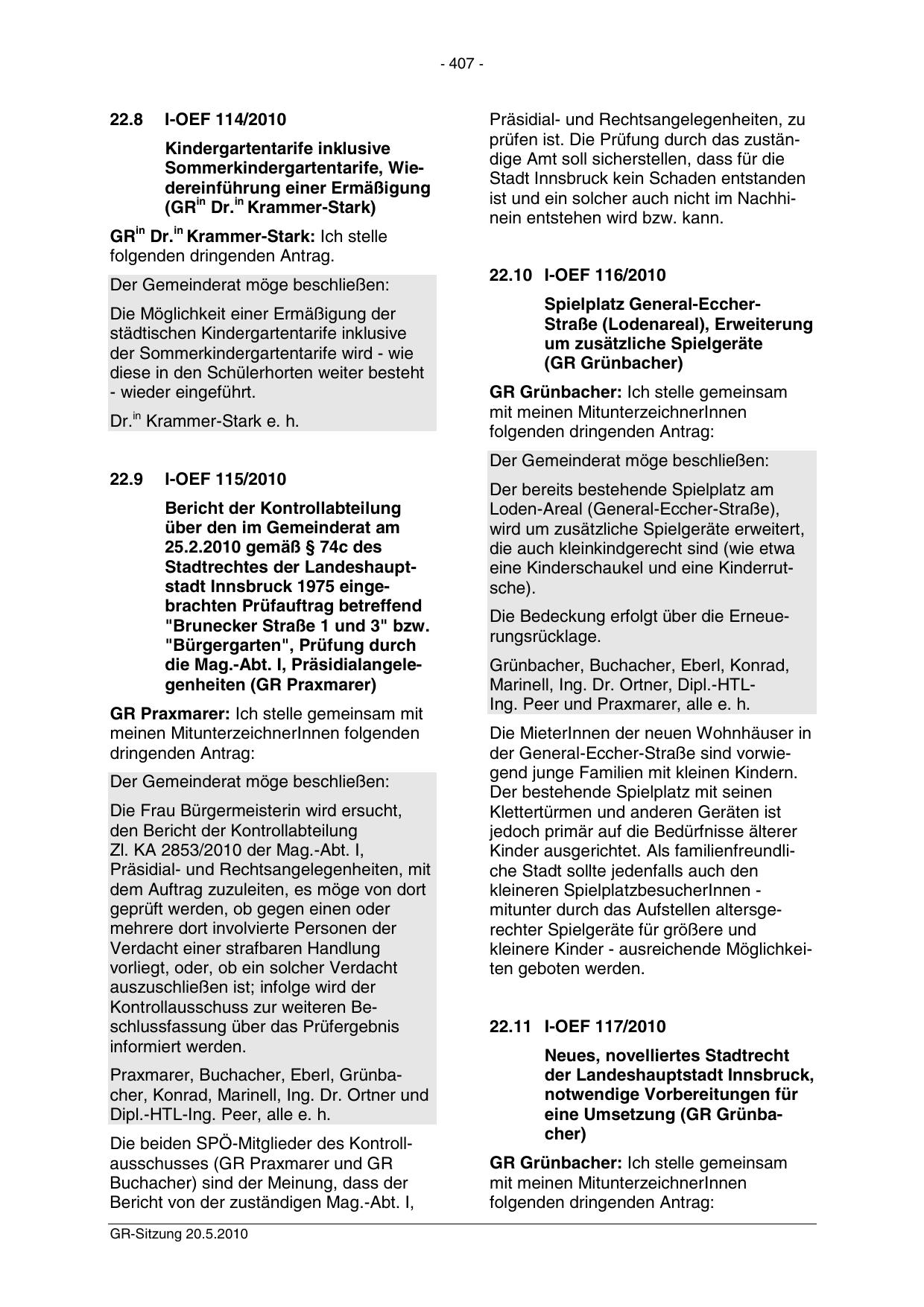 Stadtrechtes der Landeshauptstadt Innsbruck 1975 eingebrachten Prüfauftrag betreffend