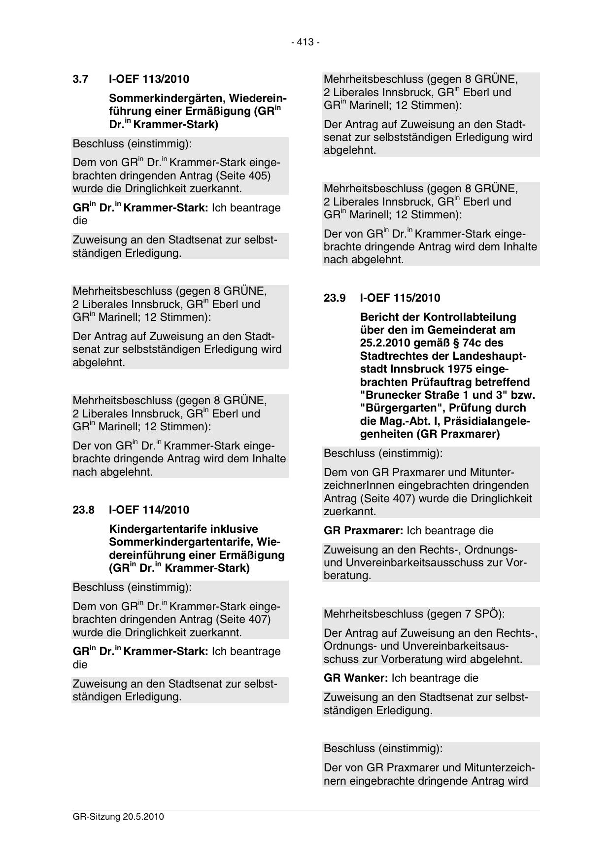 Dem von GRin Dr.in Krammer-Stark eingebrachten dringenden Antrag (Seite 405)