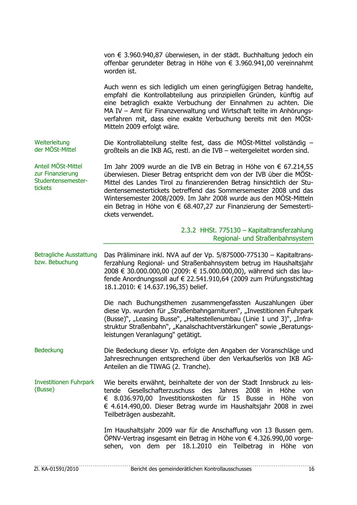 überwiesen. Dieser Betrag entspricht dem von der IVB über die MÖStMittel des Landes Tirol zu finanzierenden Betrag hinsichtlich der Studentensemestertickets betreffend das Sommersemester 2008 und das
