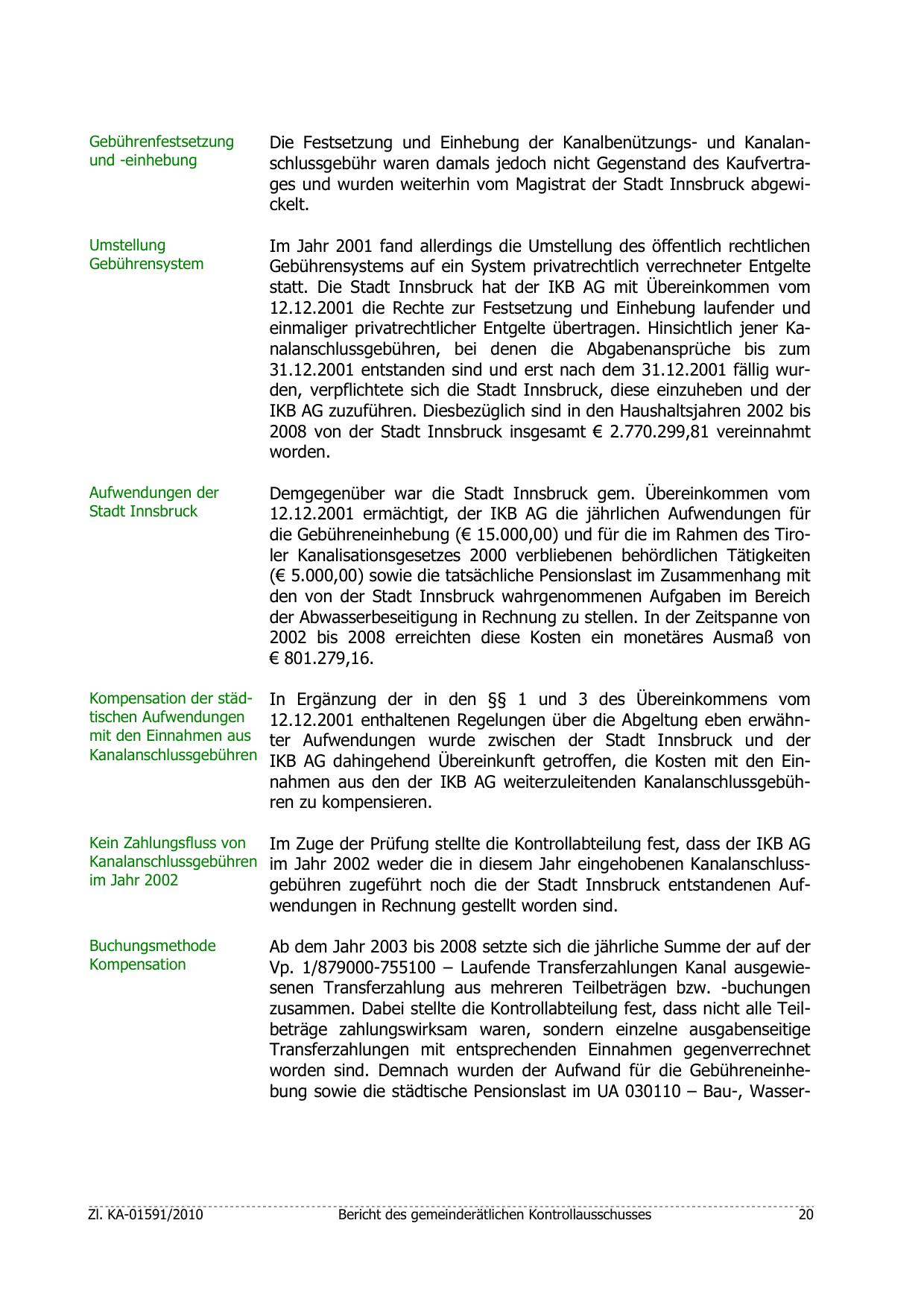 12.12.2001 enthaltenen Regelungen über die Abgeltung eben erwähnter Aufwendungen wurde zwischen der Stadt Innsbruck und der