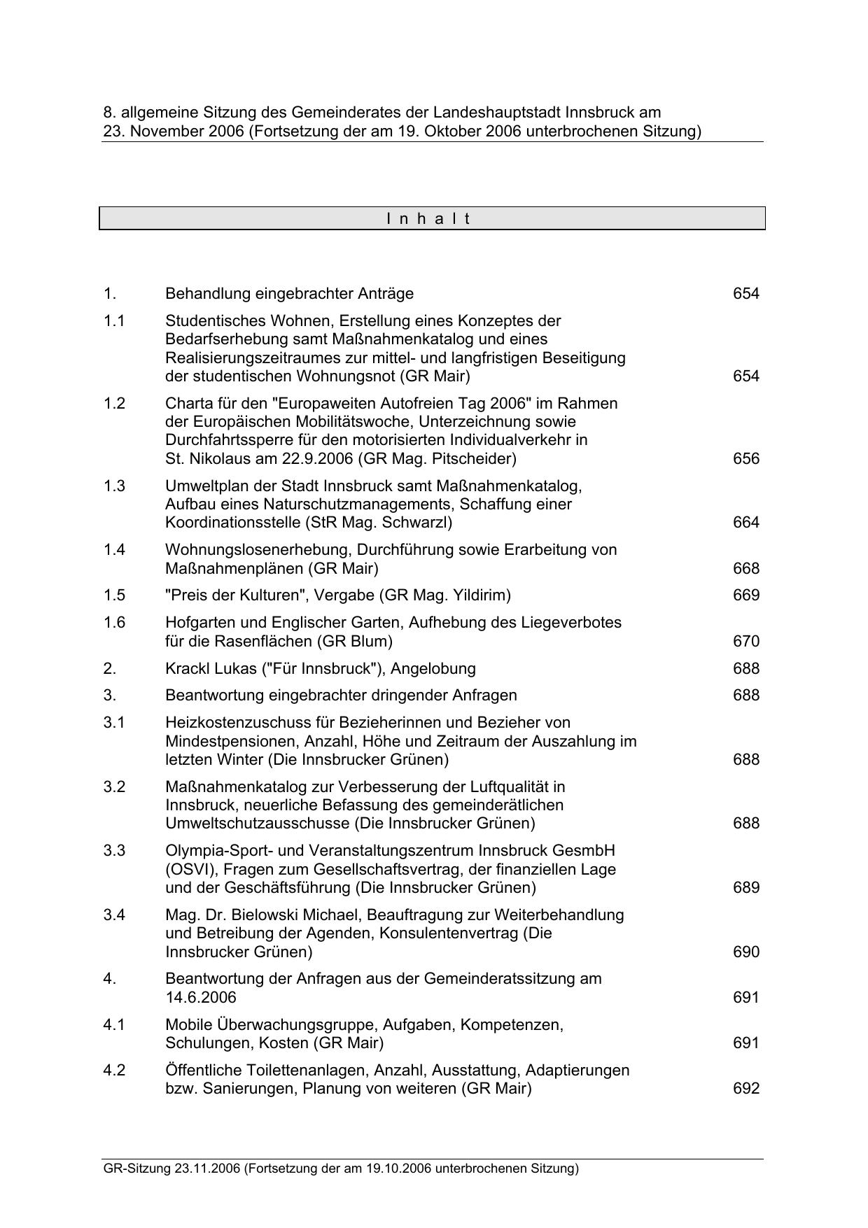 GR-Sitzung 23.11.2006 (Fortsetzung der am 19.10.2006 unterbrochenen Sitzung)