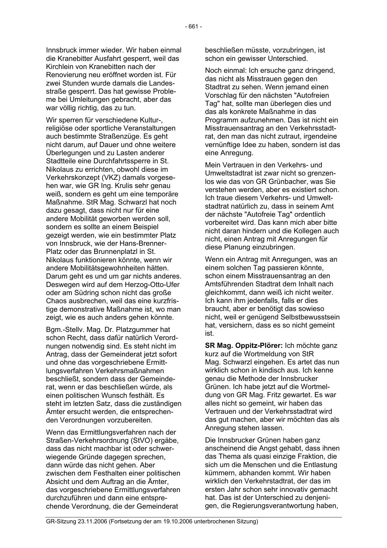GR-Sitzung 23.11.2006 (Fortsetzung der am 19.10.2006 unterbrochenen Sitzung)