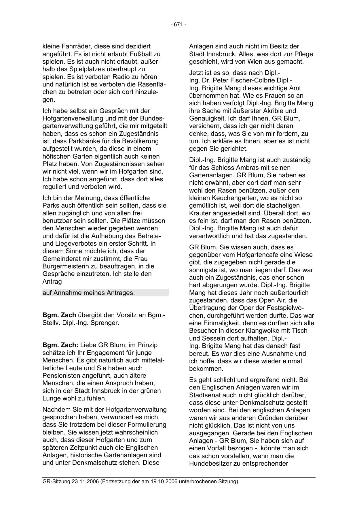 GR-Sitzung 23.11.2006 (Fortsetzung der am 19.10.2006 unterbrochenen Sitzung)