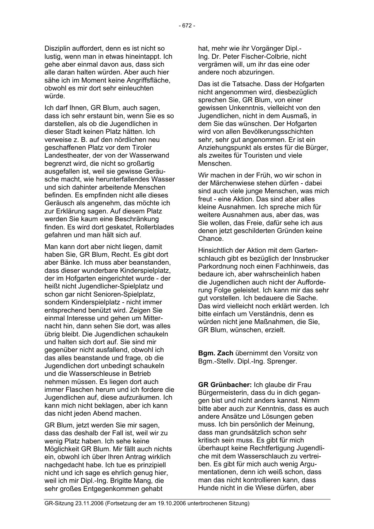 GR-Sitzung 23.11.2006 (Fortsetzung der am 19.10.2006 unterbrochenen Sitzung)