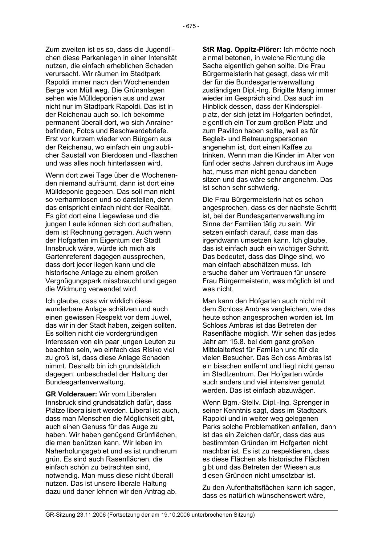 GR-Sitzung 23.11.2006 (Fortsetzung der am 19.10.2006 unterbrochenen Sitzung)