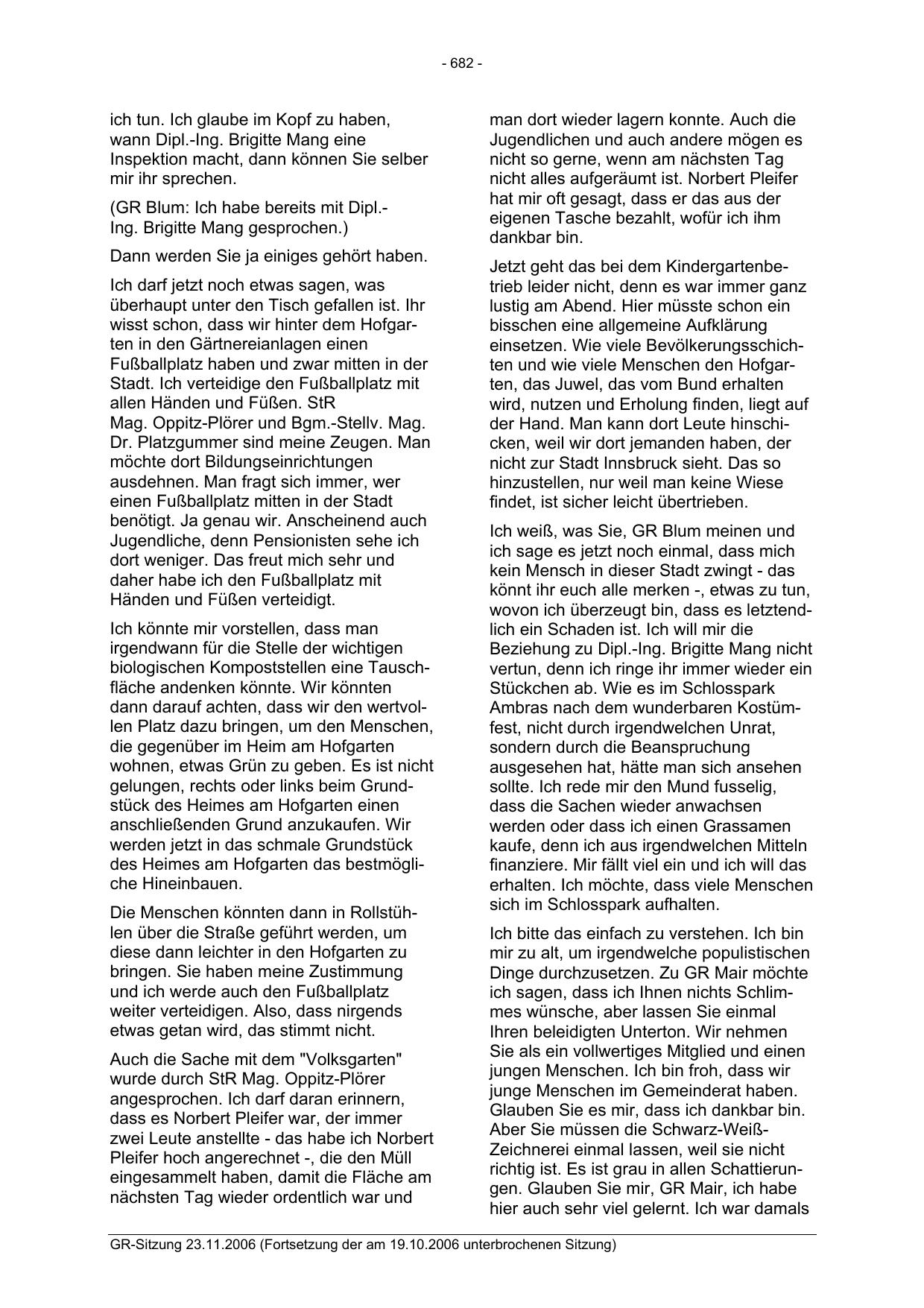 GR-Sitzung 23.11.2006 (Fortsetzung der am 19.10.2006 unterbrochenen Sitzung)