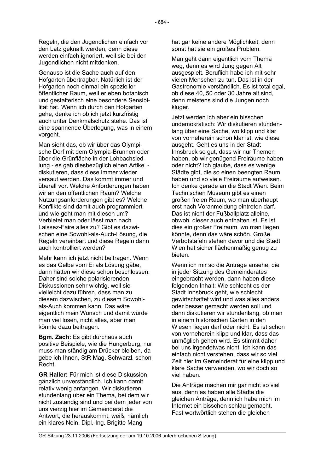 GR-Sitzung 23.11.2006 (Fortsetzung der am 19.10.2006 unterbrochenen Sitzung)