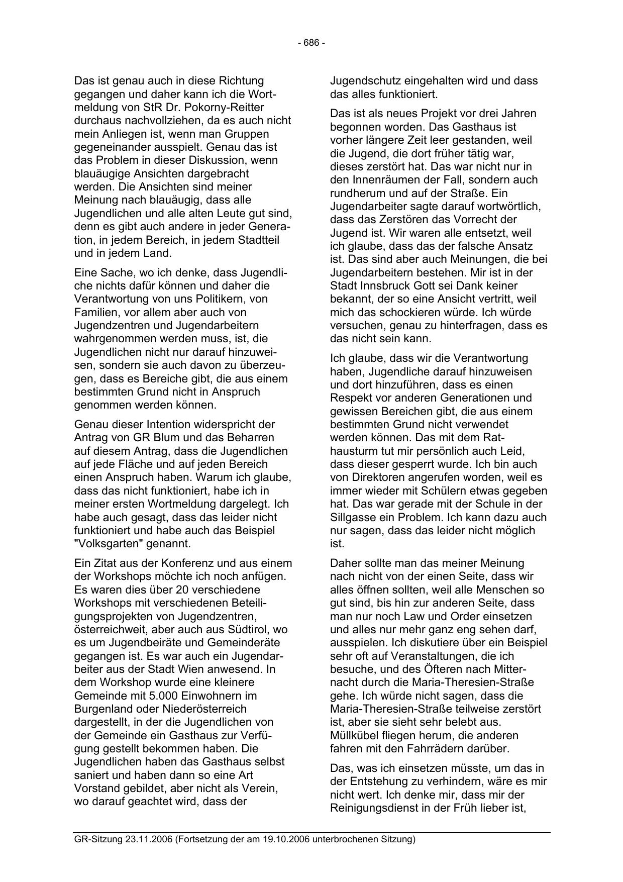 GR-Sitzung 23.11.2006 (Fortsetzung der am 19.10.2006 unterbrochenen Sitzung)