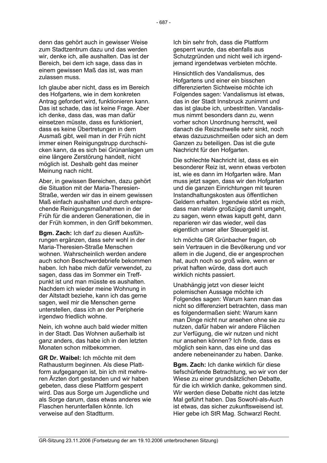 GR-Sitzung 23.11.2006 (Fortsetzung der am 19.10.2006 unterbrochenen Sitzung)