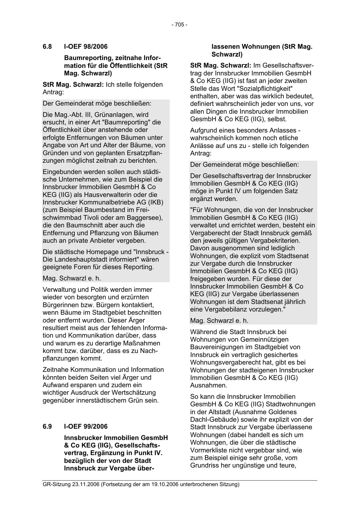 StR Mag. Schwarzl: Im Gesellschaftsvertrag der Innsbrucker Immobilien GesmbH