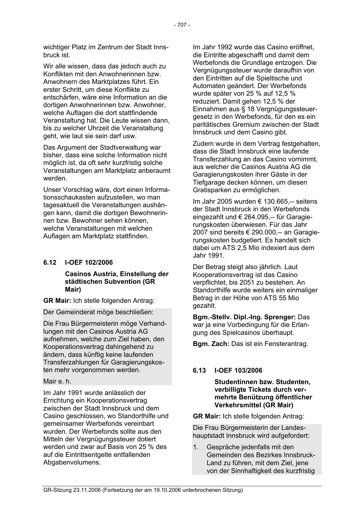 GR-Sitzung 23.11.2006 (Fortsetzung der am 19.10.2006 unterbrochenen Sitzung)