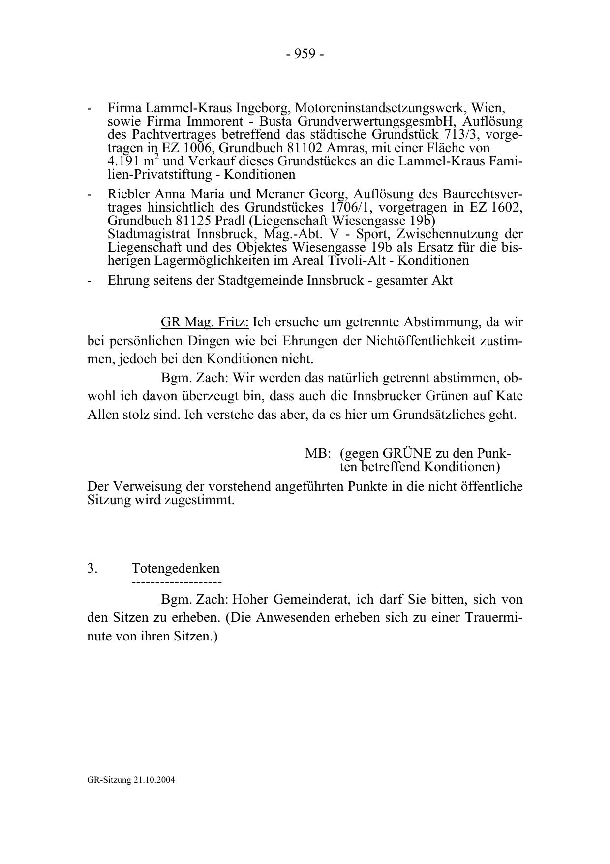 Bgm. Zach: Wir werden das natürlich getrennt abstimmen, obwohl ich davon überzeugt bin, dass auch die Innsbrucker Grünen auf Kate
