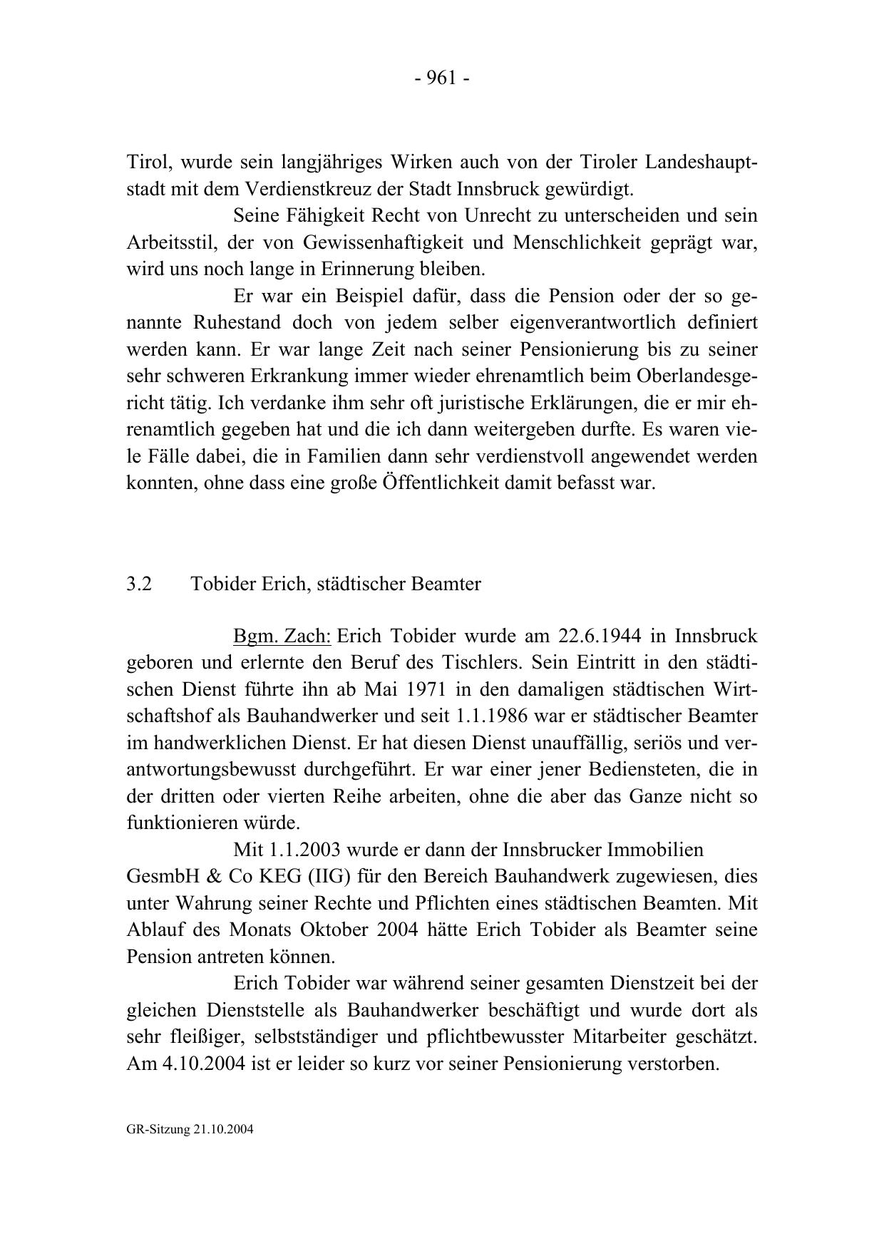 Ablauf des Monats Oktober 2004 hätte Erich Tobider als Beamter seine