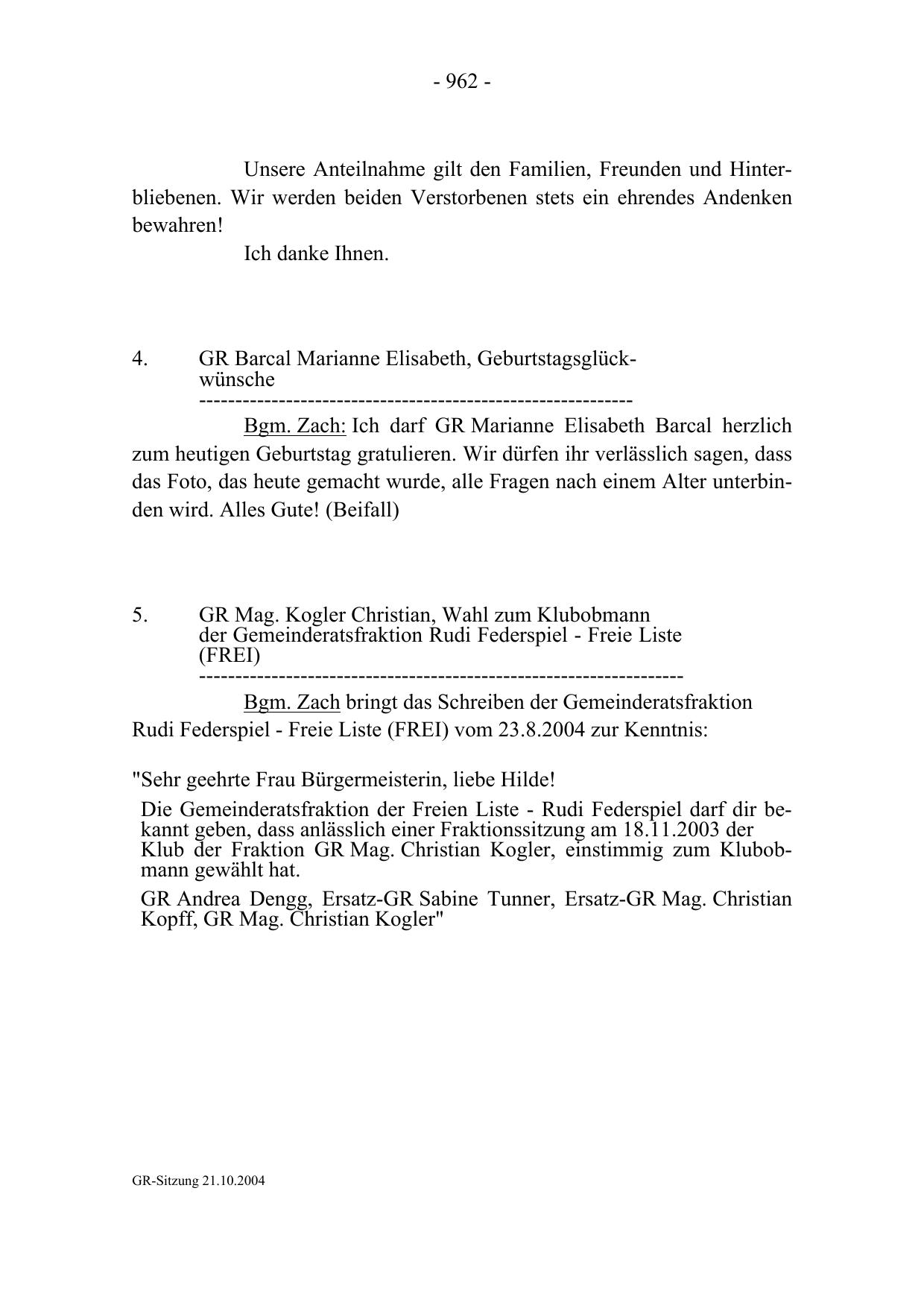 Rudi Federspiel - Freie Liste (FREI) vom 23.8.2004 zur Kenntnis: