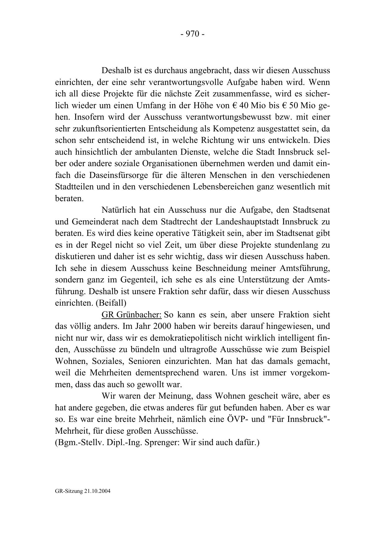 so. Es war eine breite Mehrheit, nämlich eine ÖVP- und "Für Innsbruck"Mehrheit, für diese großen Ausschüsse.