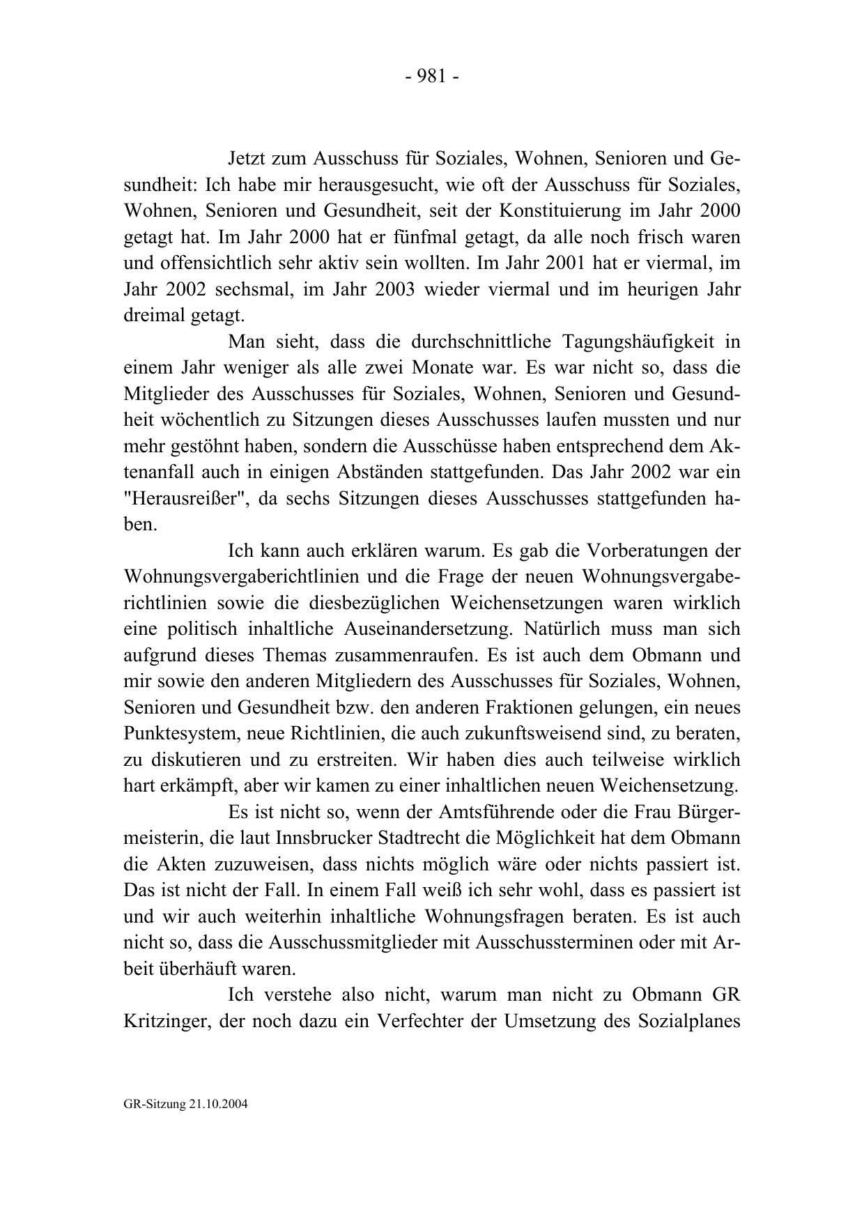 Mitglieder des Ausschusses für Soziales, Wohnen, Senioren und Gesundheit wöchentlich zu Sitzungen dieses Ausschusses laufen mussten und nur