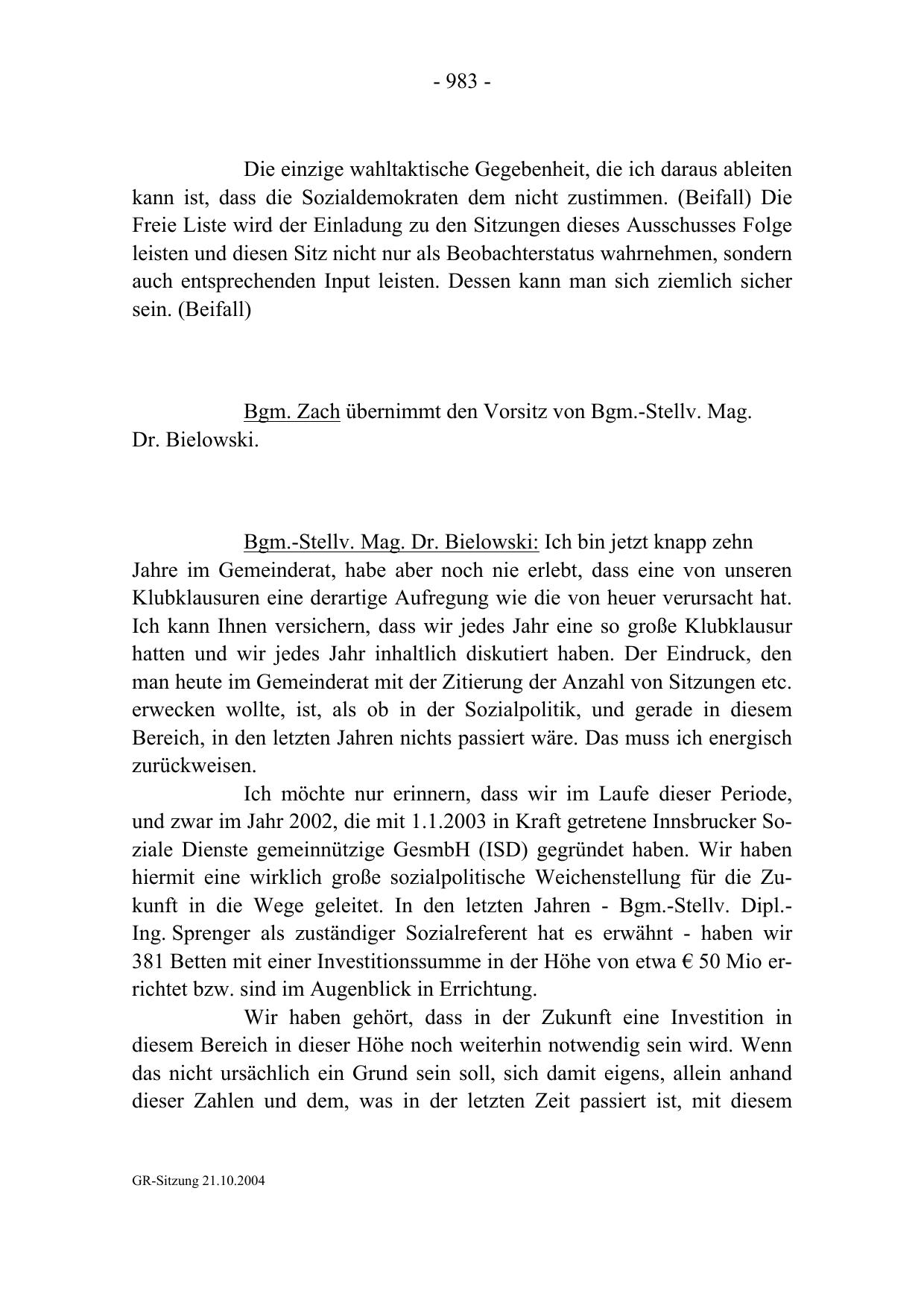 Bgm.-Stellv. Mag. Dr. Bielowski: Ich bin jetzt knapp zehn