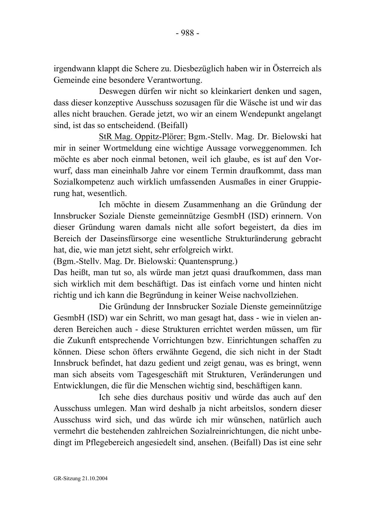 StR Mag. Oppitz-Plörer: Bgm.-Stellv. Mag. Dr. Bielowski hat