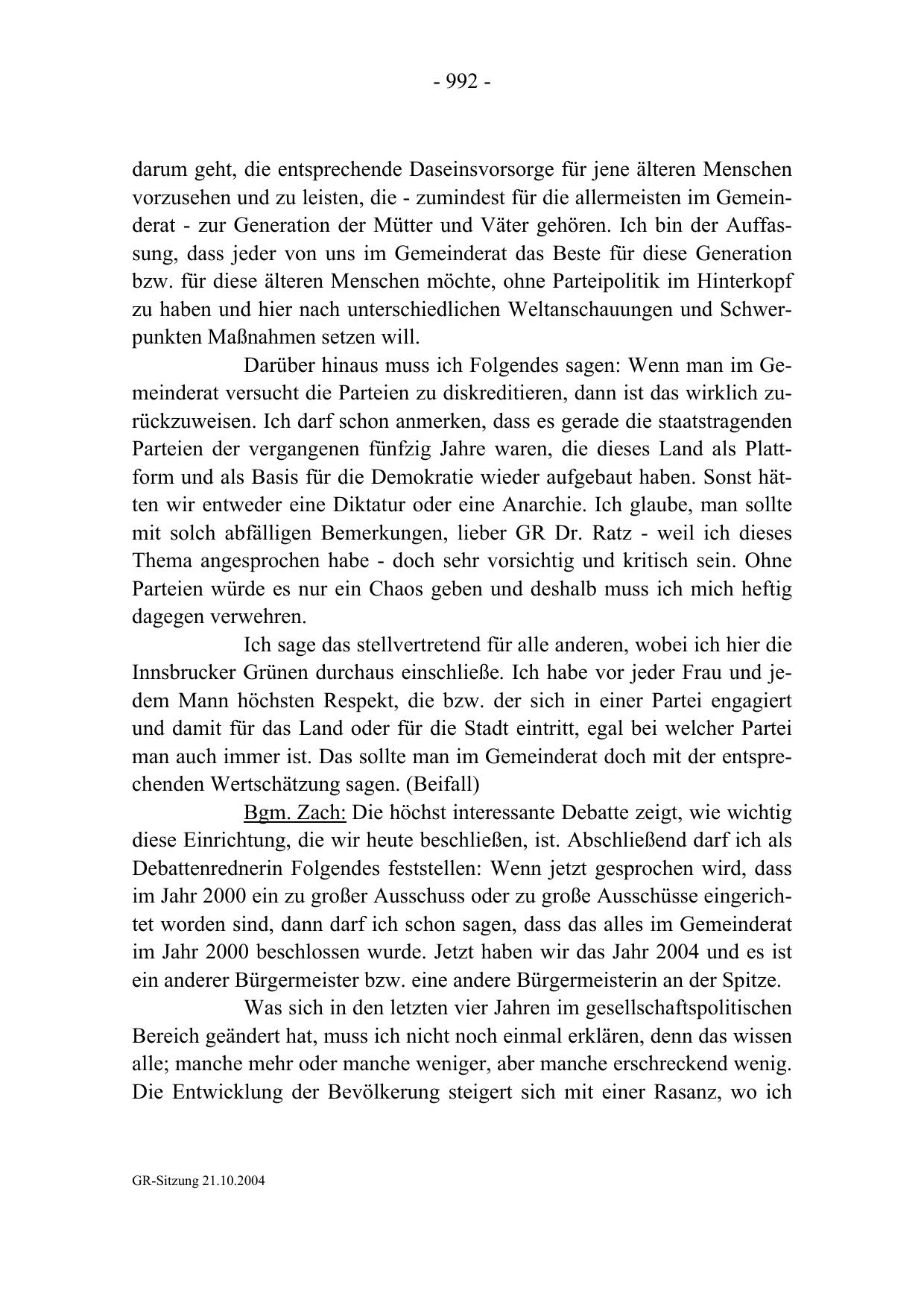 Innsbrucker Grünen durchaus einschließe. Ich habe vor jeder Frau und jedem Mann höchsten Respekt, die bzw. der sich in einer Partei engagiert