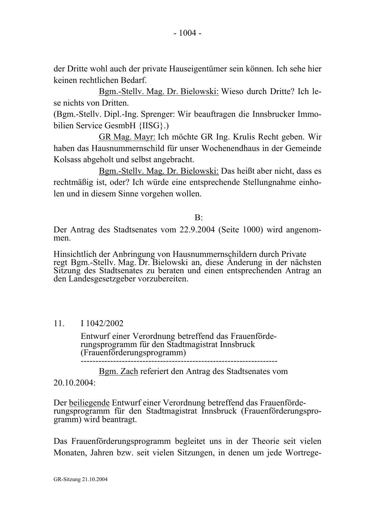 Monaten, Jahren bzw. seit vielen Sitzungen, in denen um jede WortregeGR-Sitzung 21.10.2004