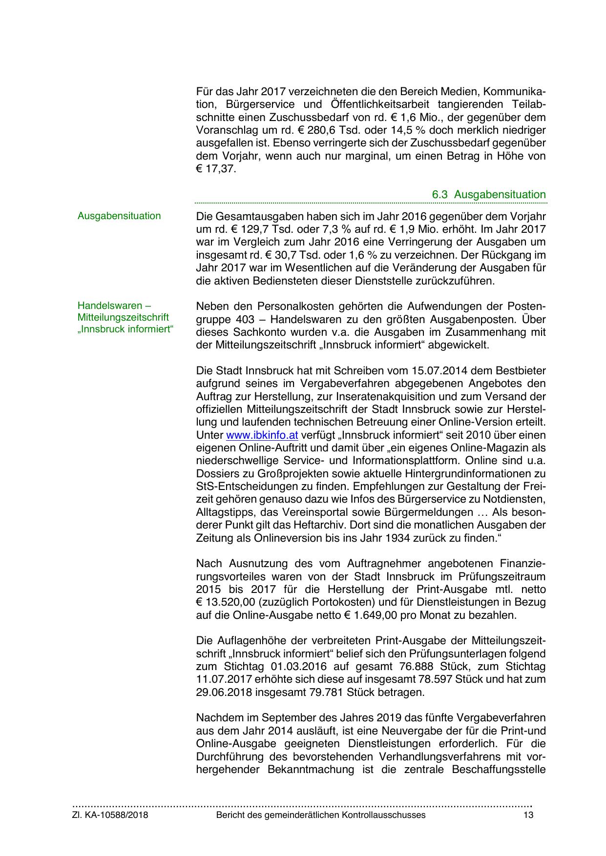 Die Auflagenhöhe der verbreiteten Print-Ausgabe der Mitteilungszeitschrift „Innsbruck informiert“ belief sich den Prüfungsunterlagen folgend