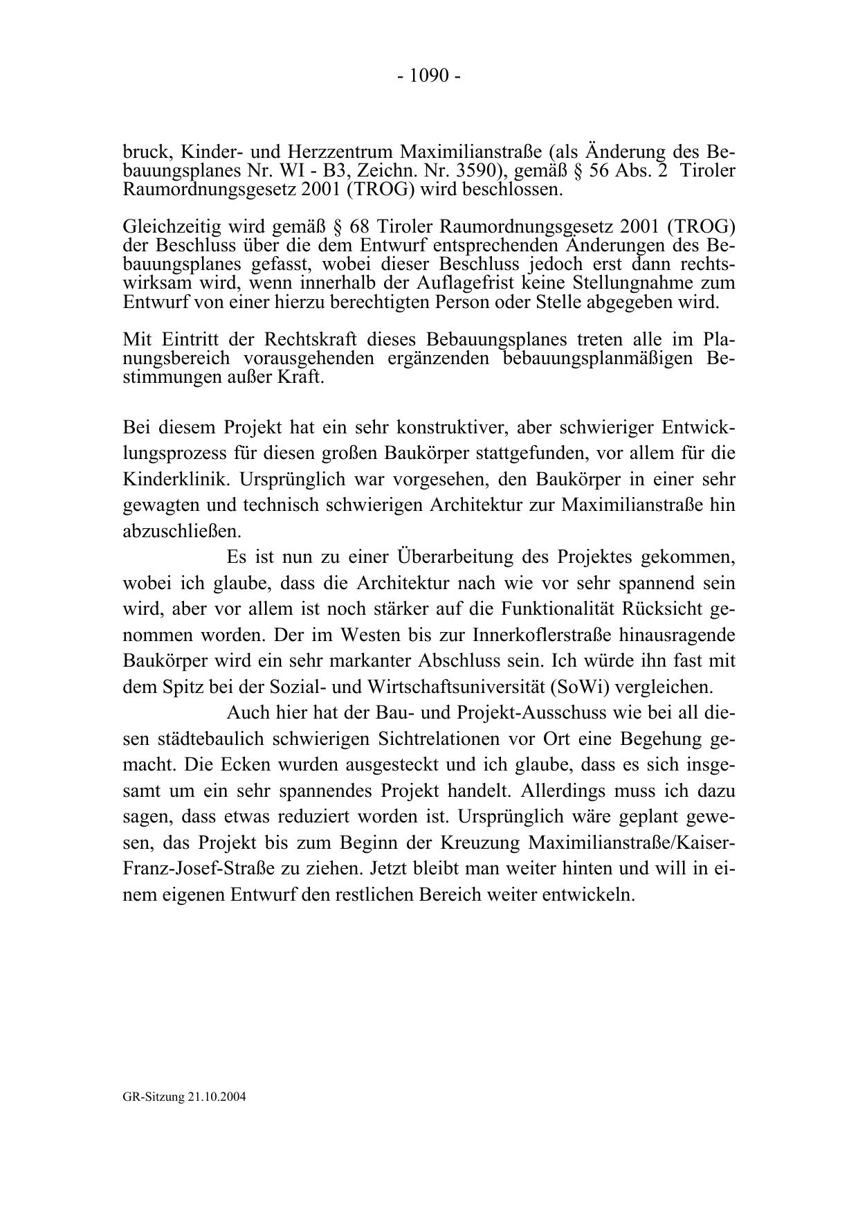 bruck, Kinder- und Herzzentrum Maximilianstraße (als Änderung des Bebauungsplanes Nr. WI - B3, Zeichn. Nr. 3590), gemäß § 56 Abs. 2 Tiroler
