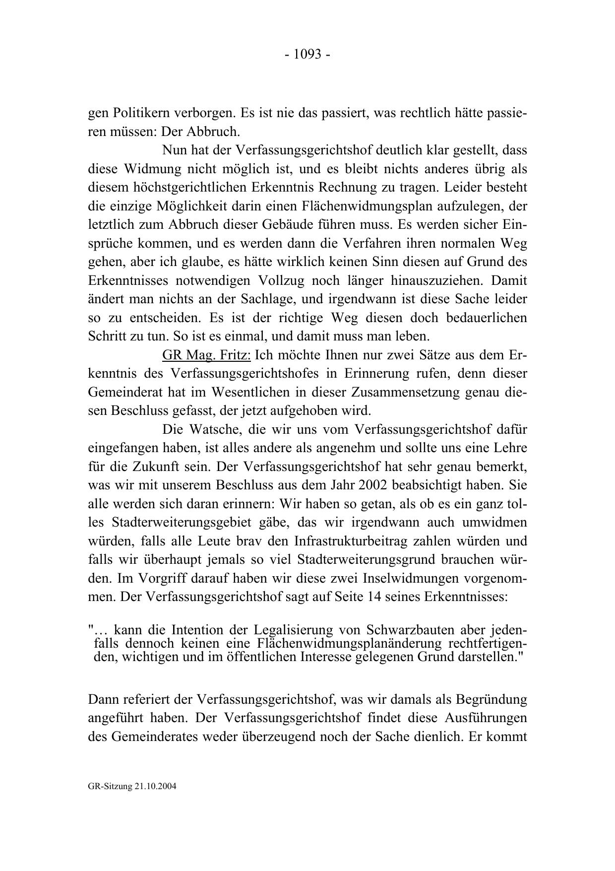 GR Mag. Fritz: Ich möchte Ihnen nur zwei Sätze aus dem Erkenntnis des Verfassungsgerichtshofes in Erinnerung rufen, denn dieser