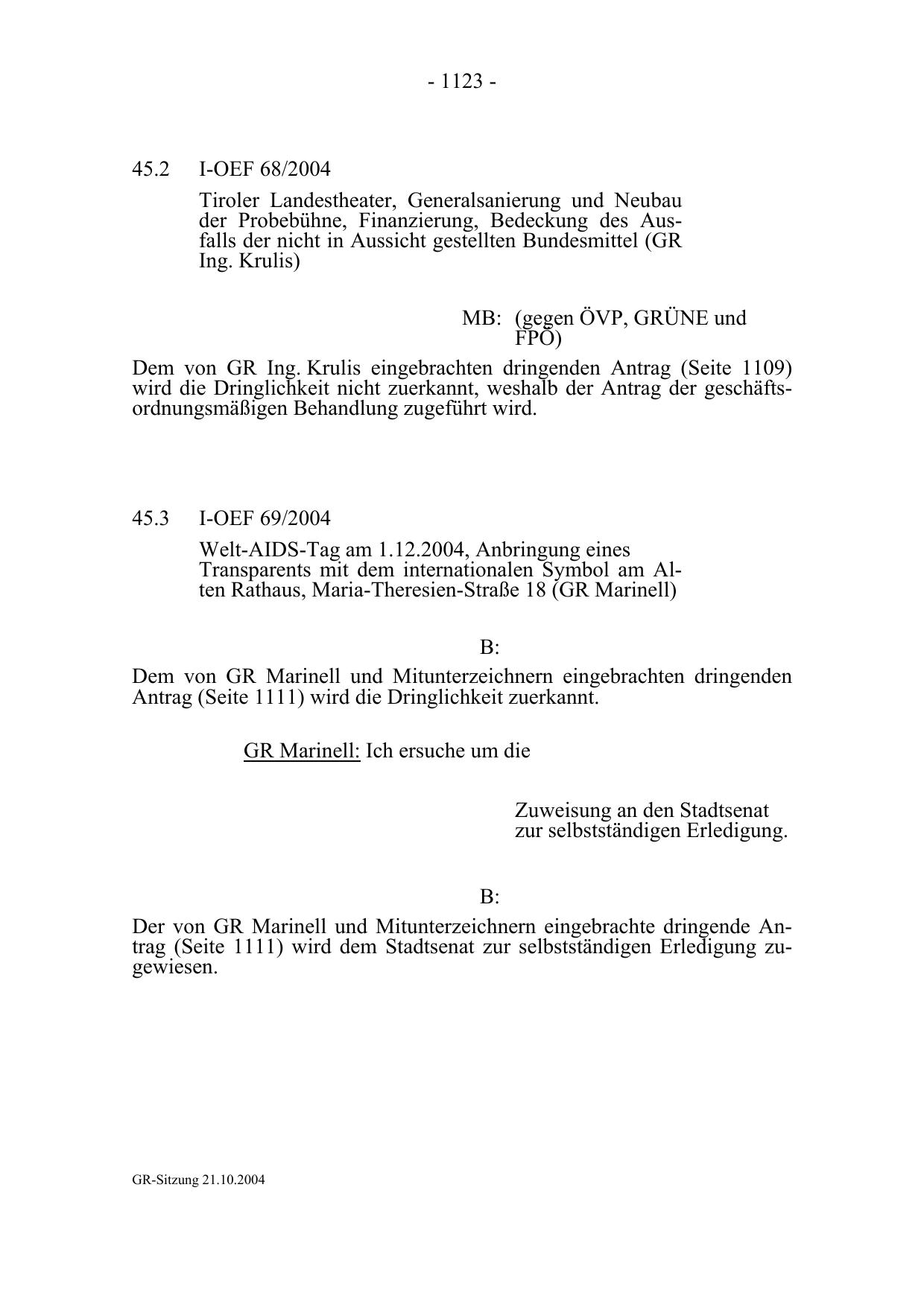 Dem von GR Ing. Krulis eingebrachten dringenden Antrag (Seite 1109)