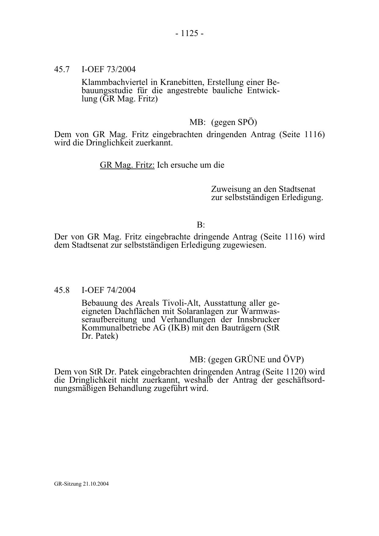 Dem von StR Dr. Patek eingebrachten dringenden Antrag (Seite 1120) wird