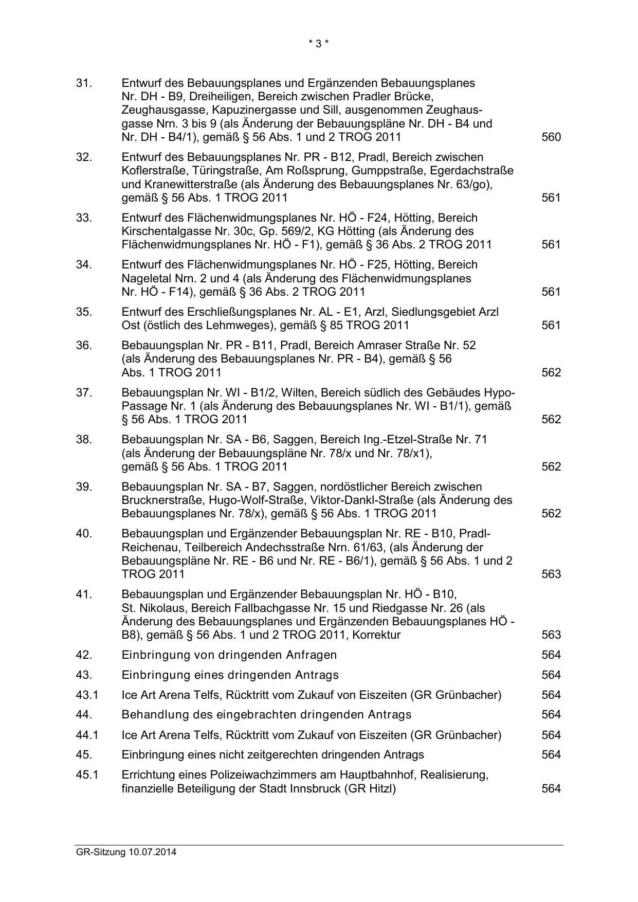 Bebauungsplan Nr. WI - B1/2, Wilten, Bereich südlich des Gebäudes HypoPassage Nr. 1 (als Änderung des Bebauungsplanes Nr. WI - B1/1), gemäß