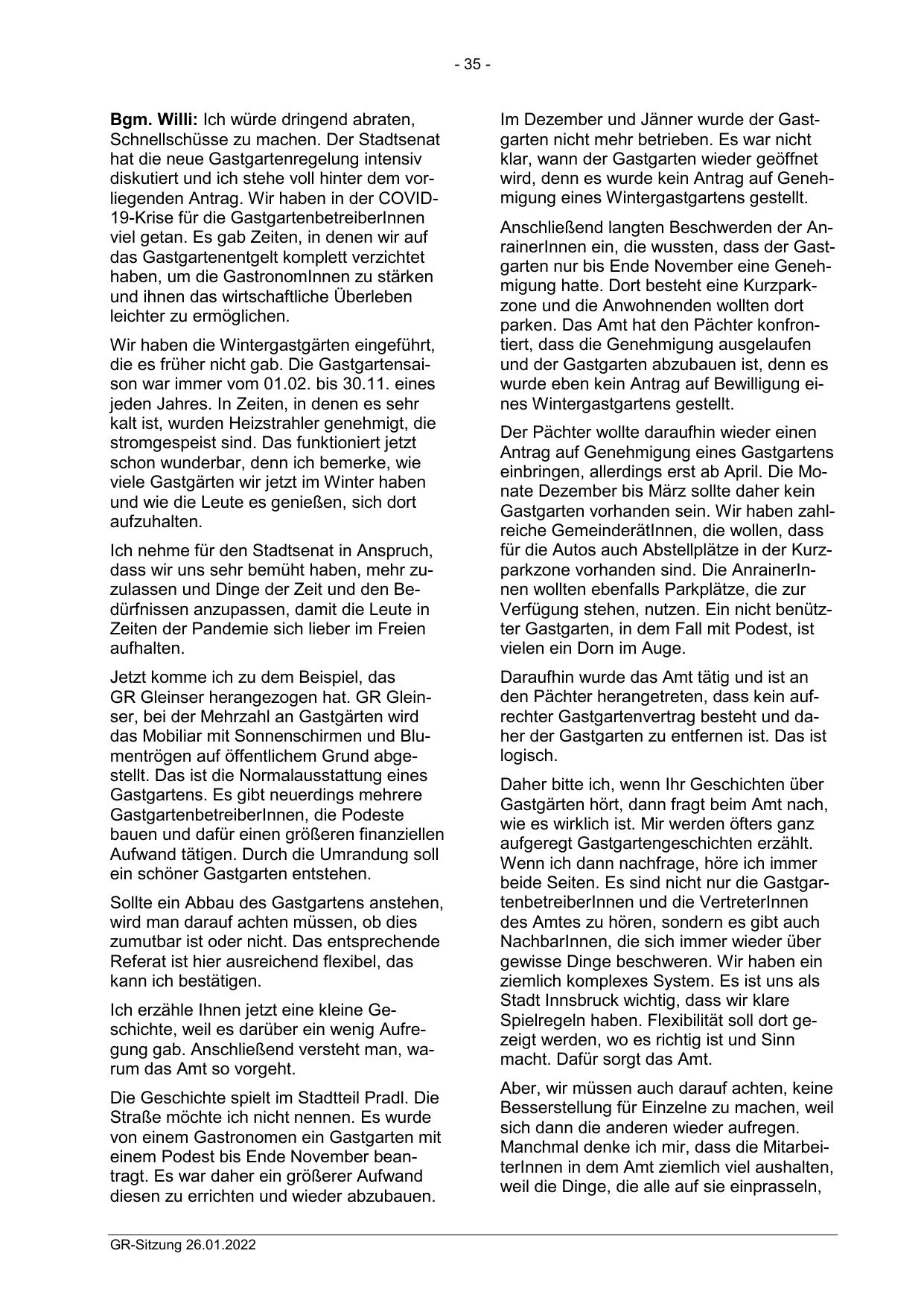 Gastgarten vorhanden sein. Wir haben zahlreiche GemeinderätInnen, die wollen, dass